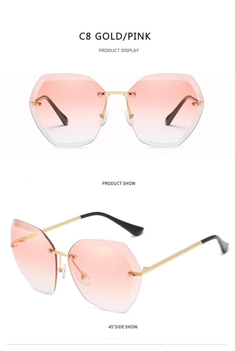 Солнцезащитные очки женские, дизайнерские, в оправе из сплава в стиле ретро, без оправы градиентный