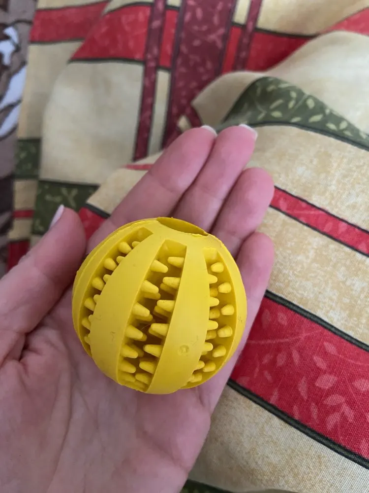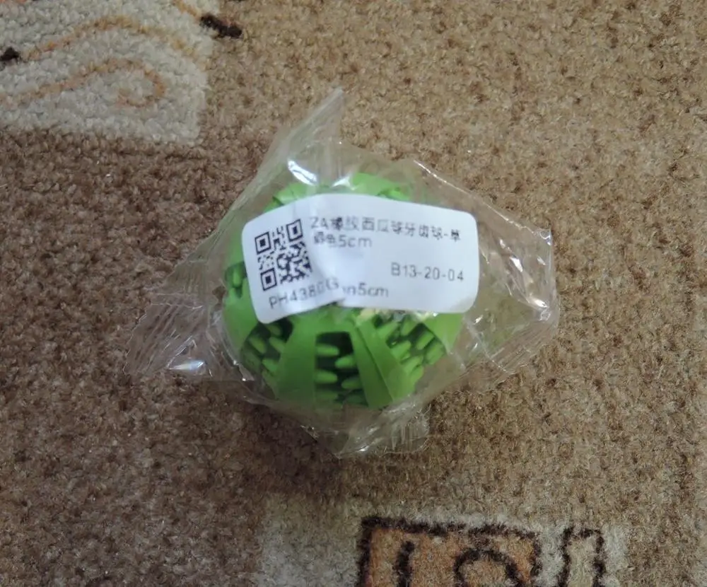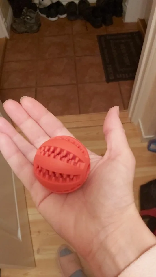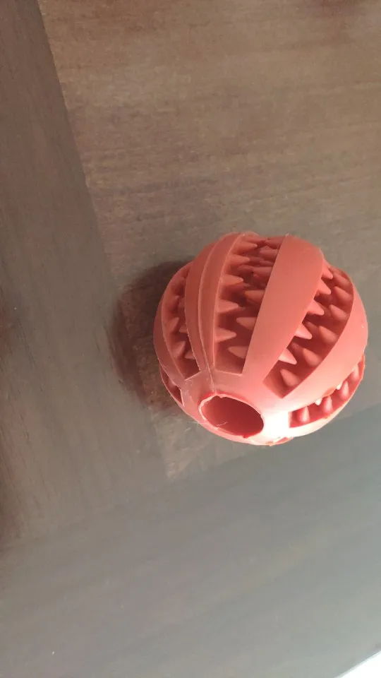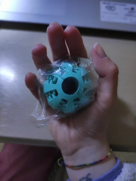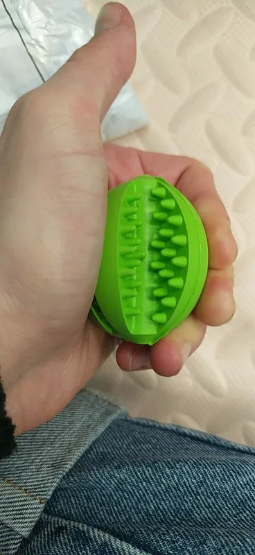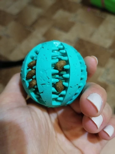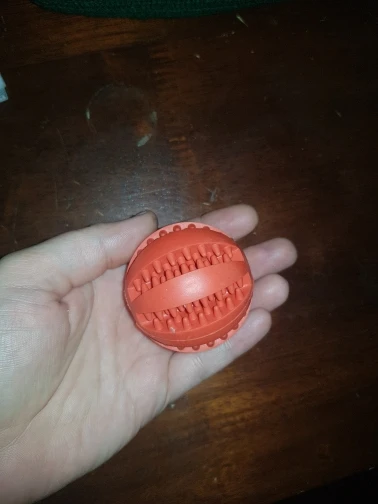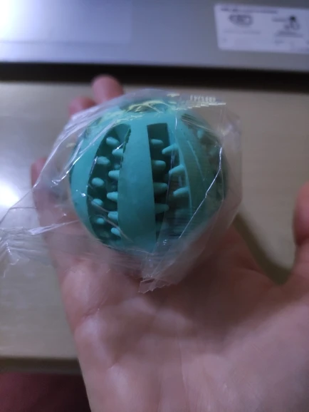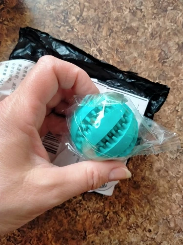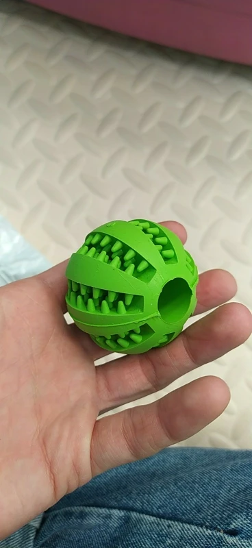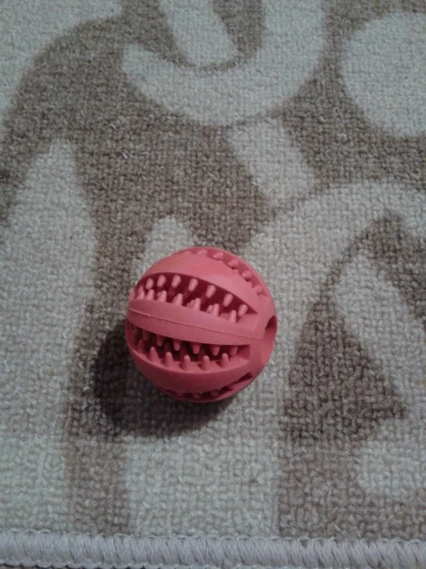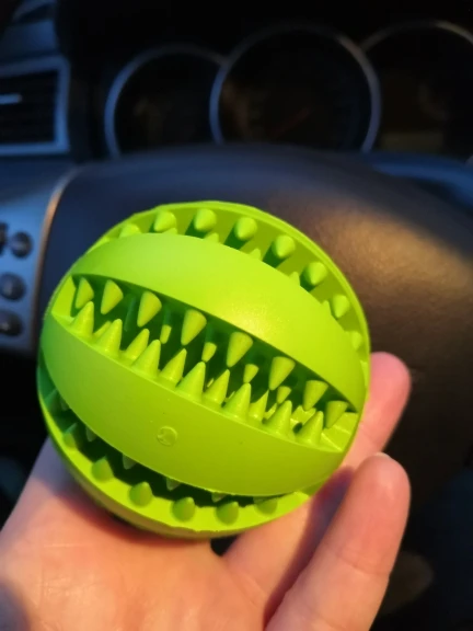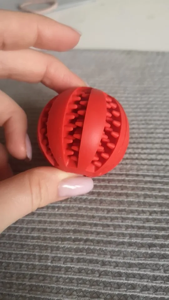 Заказывала мячик диаметром 5 см. Мячик маленький, для небольших собак или щенков. Отлично по размеру подошел для померанского шпица. Мячик НЕ жесткий - т.е. сама резина плотная, но мягкая, пупырчики для лакомств мягкие и гибкие, зубы и десны собаке не повредят. Единственное что - пылюка и шерстинки к нему налипают, но это не страшно. Чуть-чуть есть запах резины, но не резкий, быстро выветрится. Пес мячик оценил и по основному функционалу (добыть самому сложнодобываемую вкусняху) и как погрызушку и как обычный мячик (прыгучий). Фото и описание соответствуют. Шло примерно месяц.
