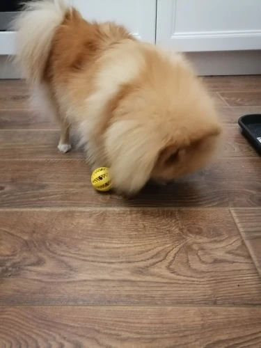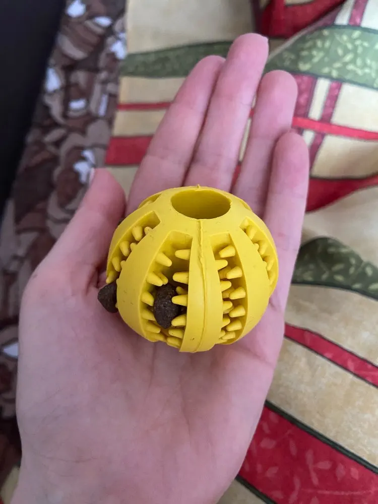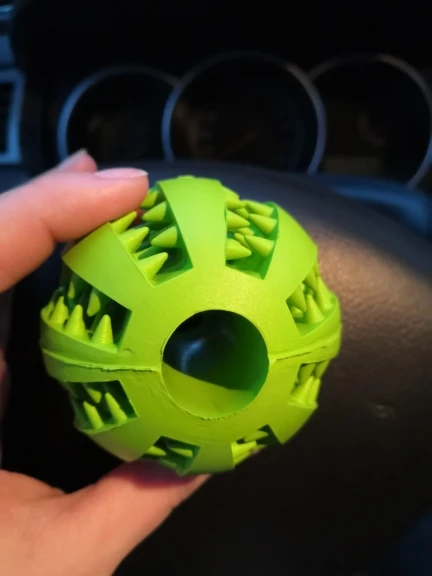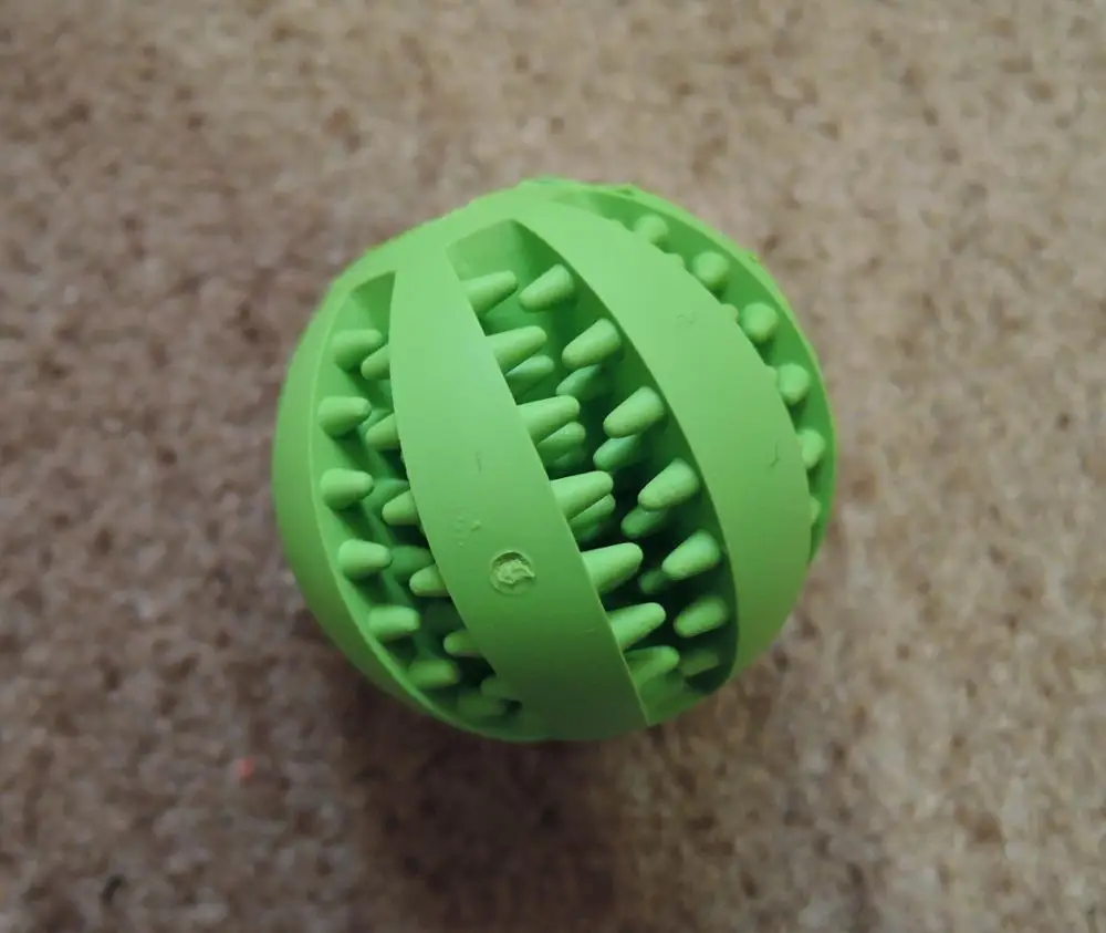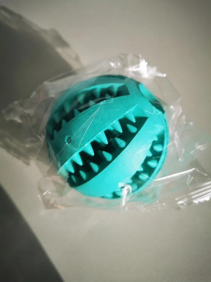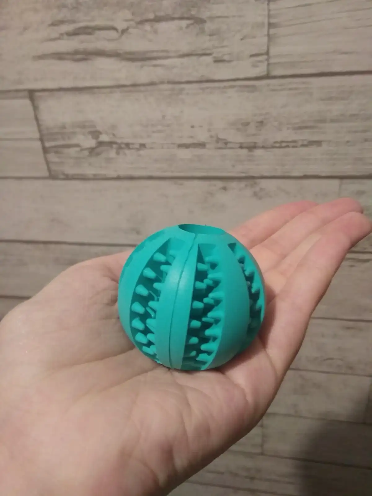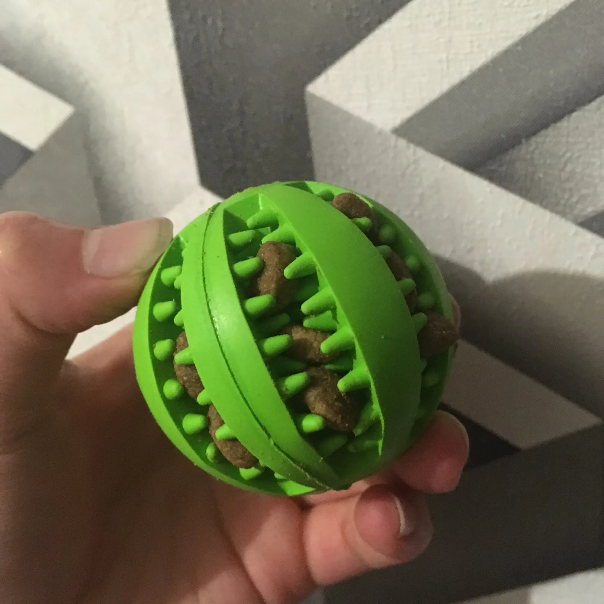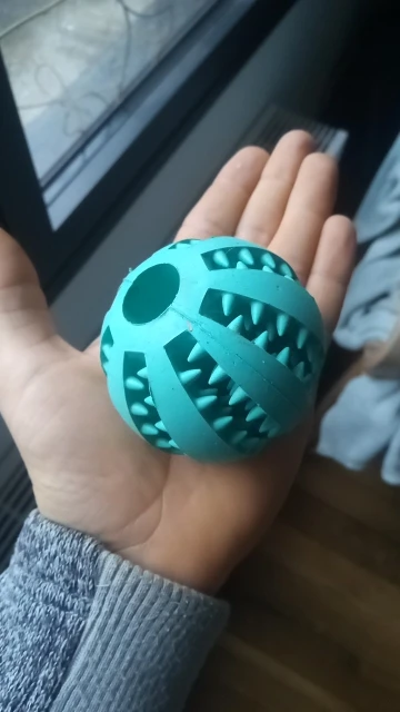 Заказывала мячик диаметром 5 см. Мячик маленький, для небольших собак или щенков. Отлично по размеру подошел для померанского шпица. Мячик НЕ жесткий - т.е. сама резина плотная, но мягкая, пупырчики для лакомств мягкие и гибкие, зубы и десны собаке не повредят. Единственное что - пылюка и шерстинки к нему налипают, но это не страшно. Чуть-чуть есть запах резины, но не резкий, быстро выветрится. Пес мячик оценил и по основному функционалу (добыть самому сложнодобываемую вкусняху) и как погрызушку и как обычный мячик (прыгучий). Фото и описание соответствуют. Шло примерно месяц.