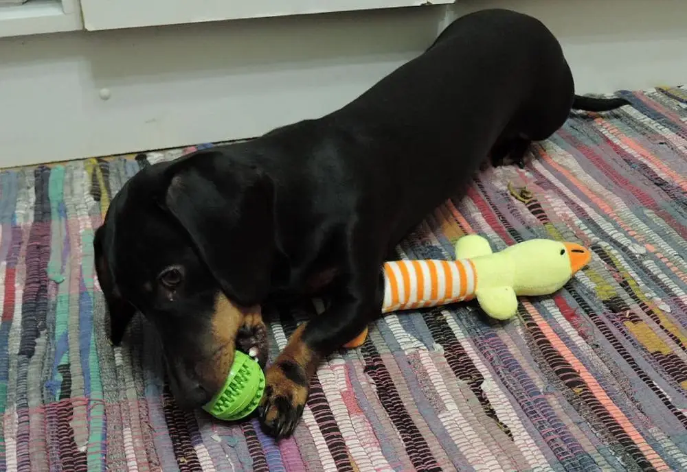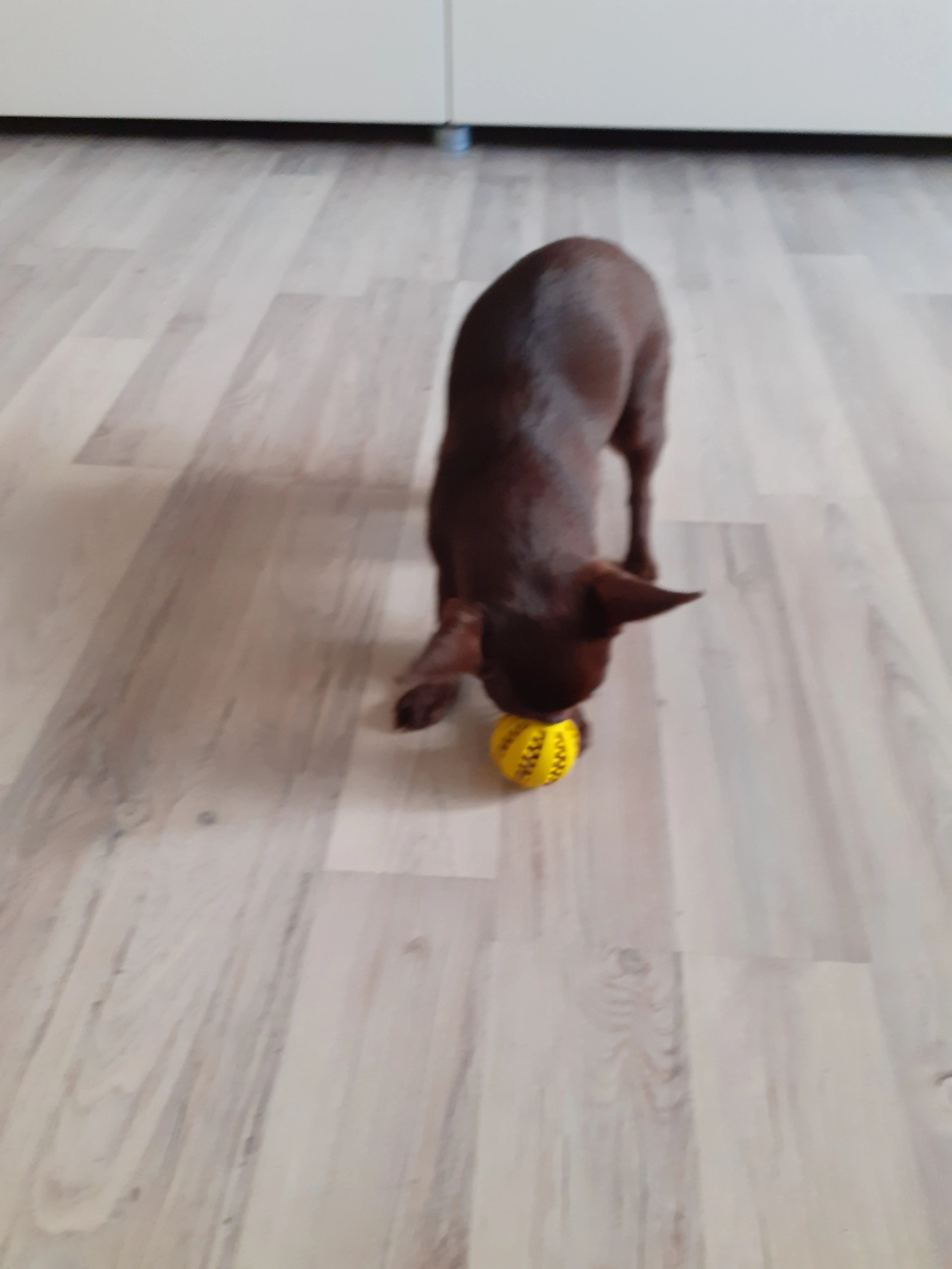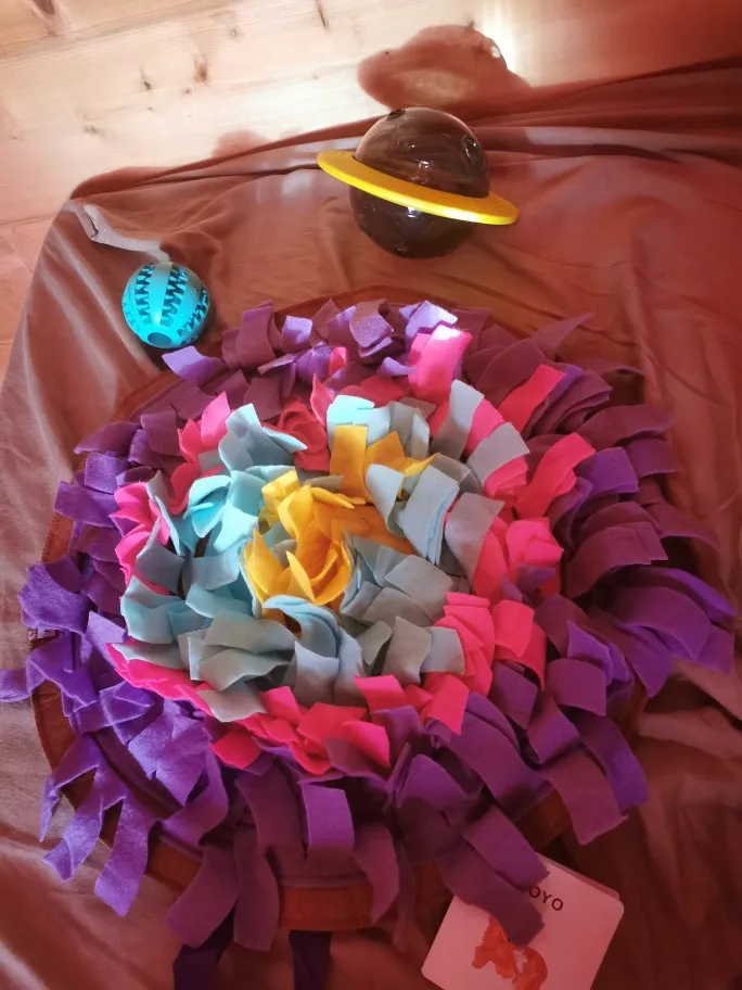 Собака, сначала воодушевившись новой игрушкой радовалась, а потом устала и спрятала так, что уже две недели ищу, по всему дому.
