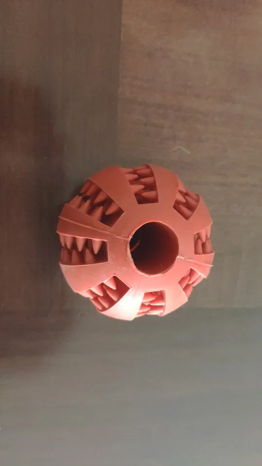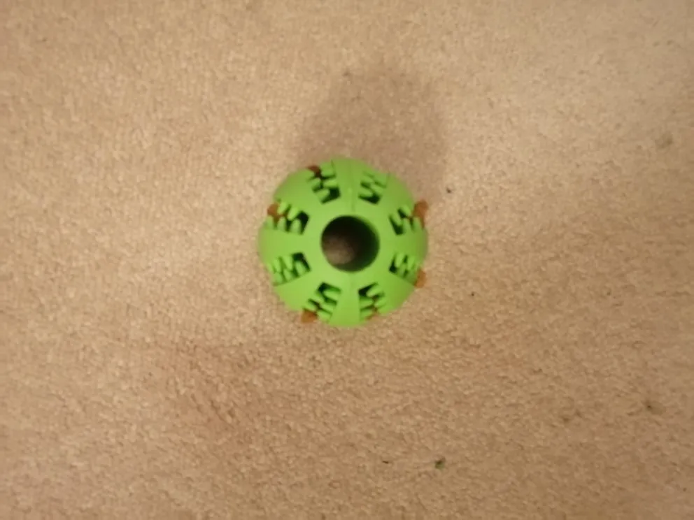 Симпатичная прочная игрушка для Джек Рассела. 3й день, а она еще цела. Мелкие вкусняшки можно засовывать в прорезях. Собака сама занимается, играет. Ей нравится.Спасибо продавцу.