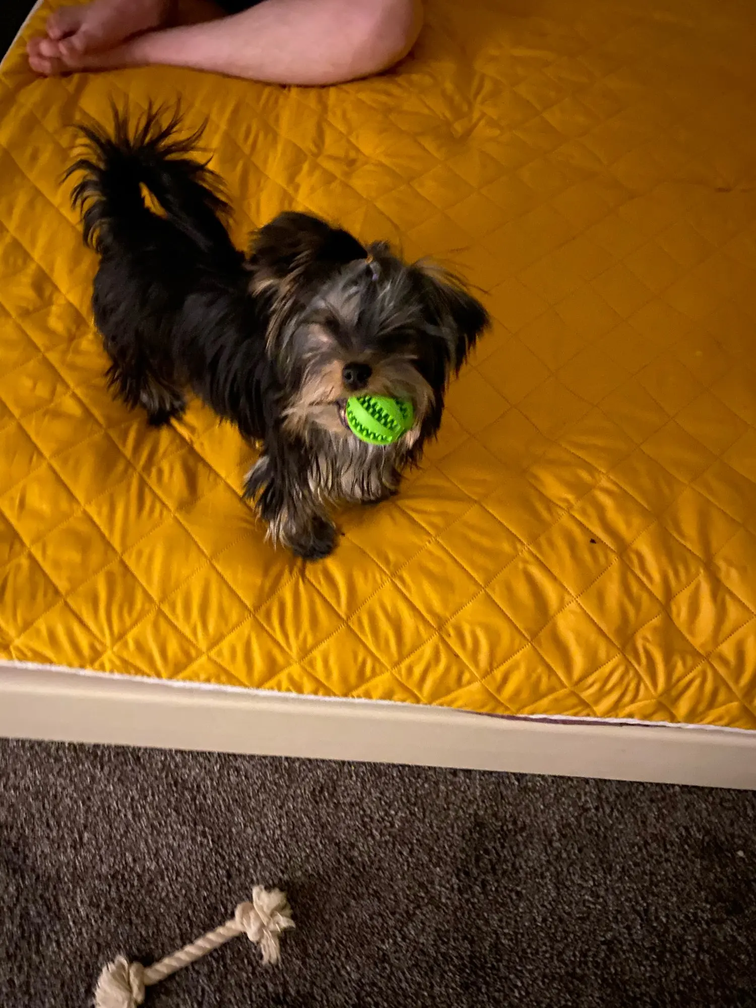 Собака увлекается, потом забывает про него. Биглю мяч Маленький очень. Подходит для собак маленьких пород.