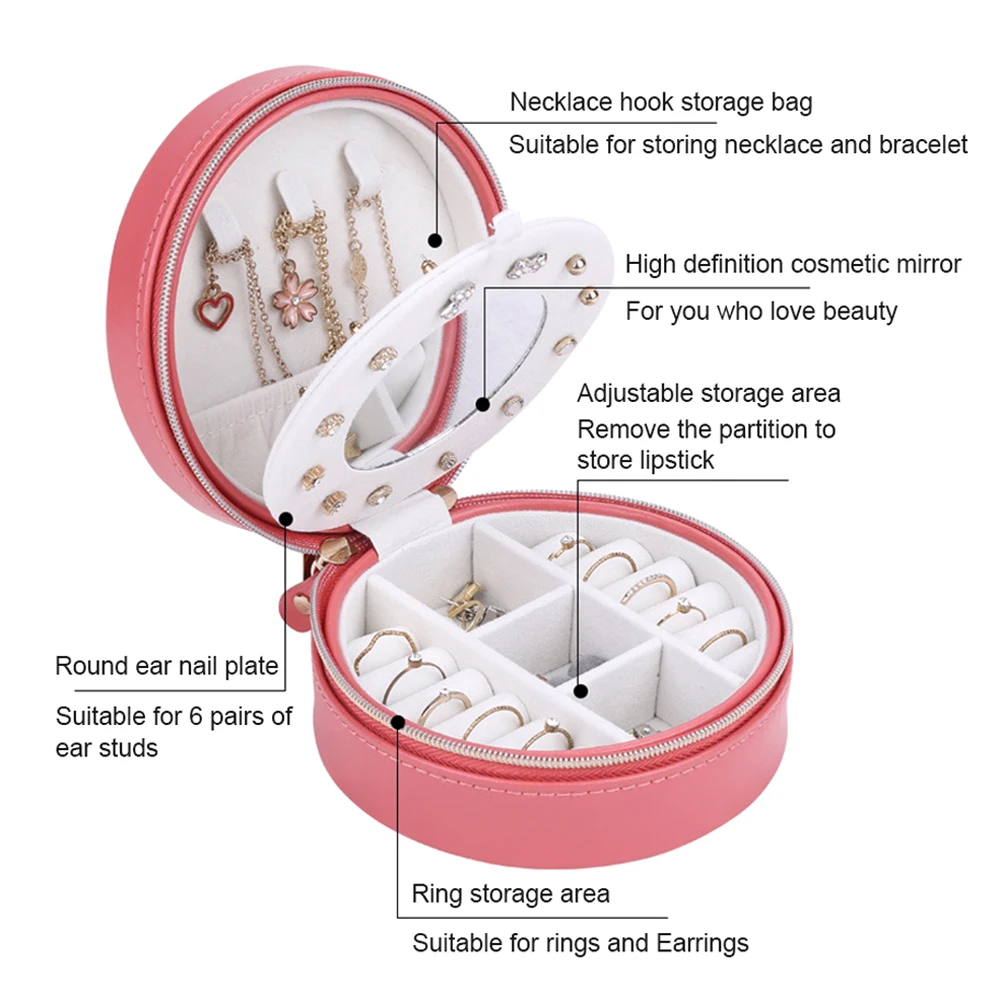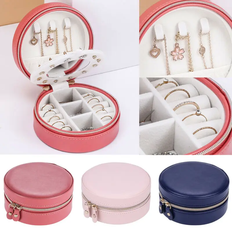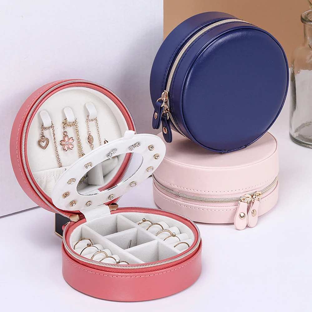 Дорожная коробочка для украшений, портативный круглый чехол для хранения ювелирных изделий, держатель для ожерелий, колец, серег, браслетов