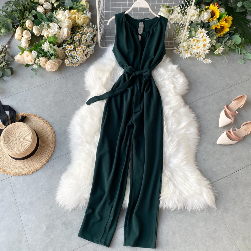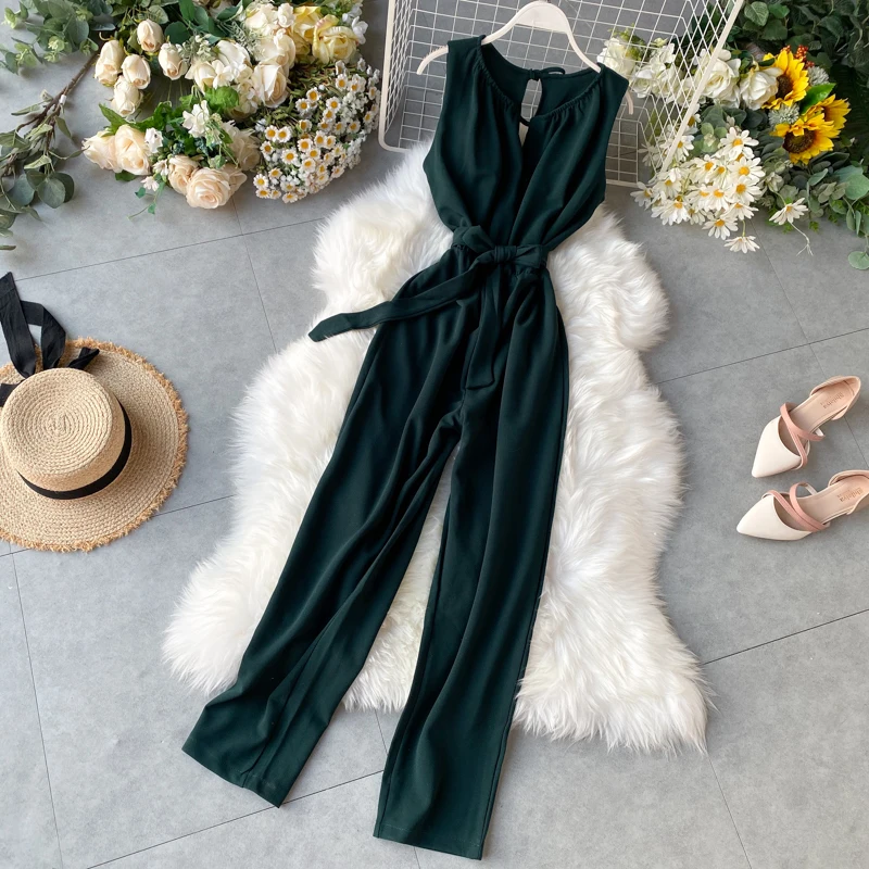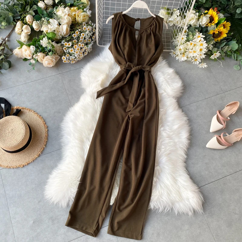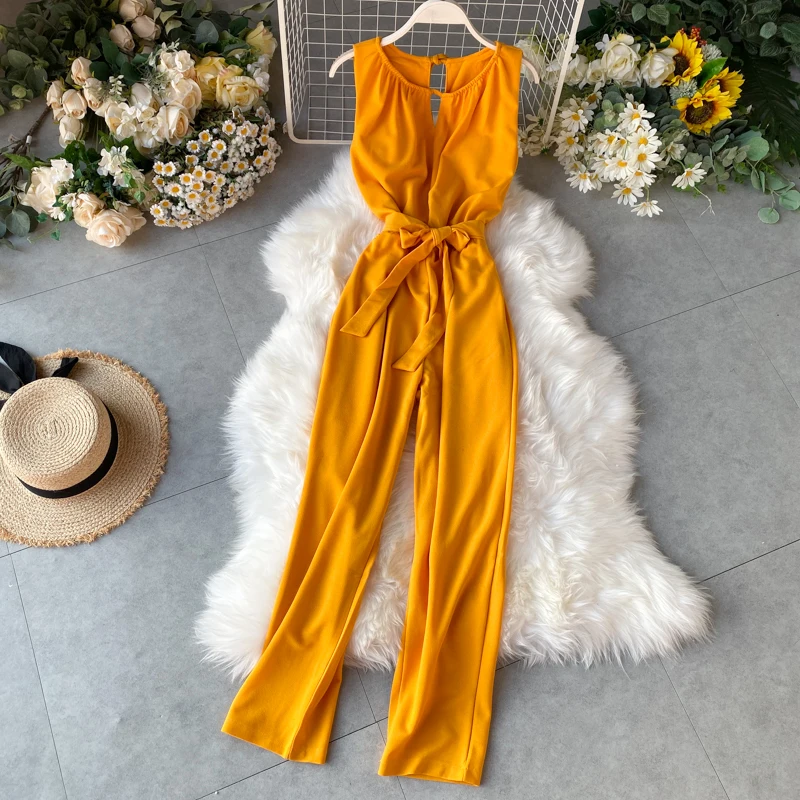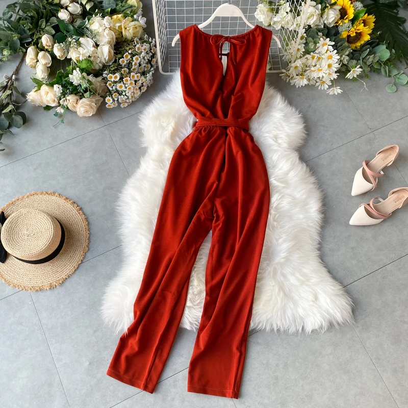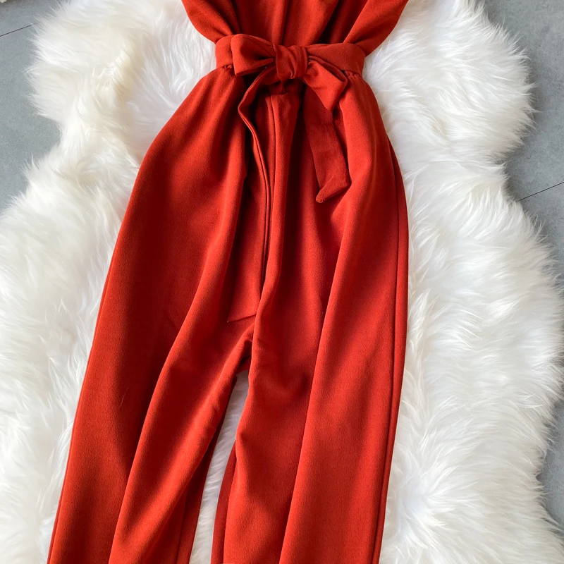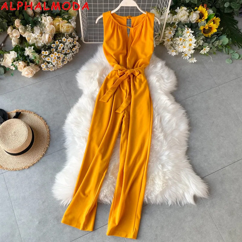 Женский комбинезон ALPHALMODA, однотонный повседневный комбинезон без рукавов, с лямкой через шею, с эластичным поясом, 2020