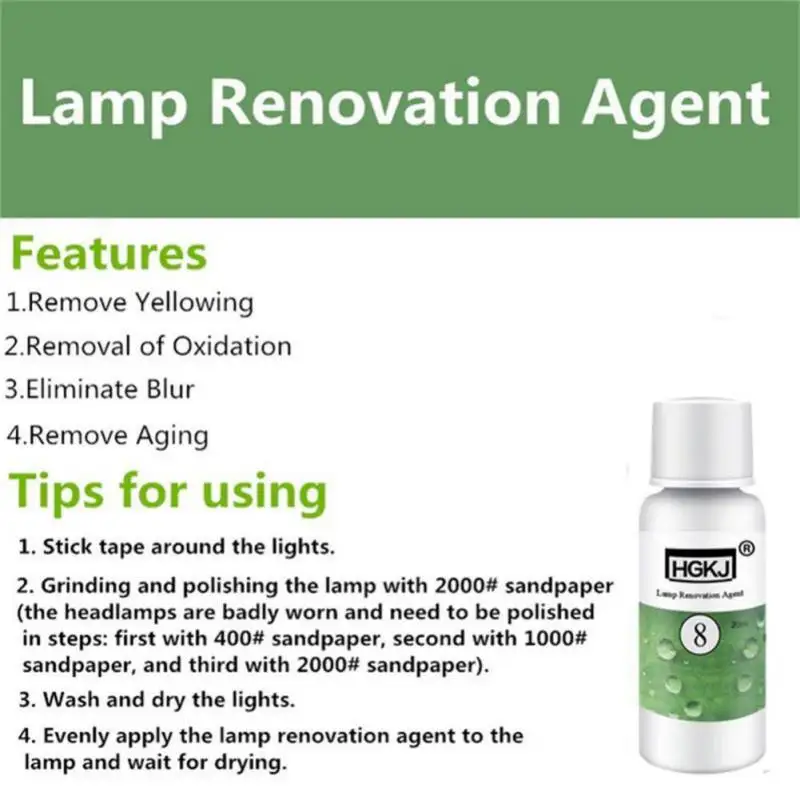 1. Ремонт и обновление фар автомобиля-обеспечивает профессиональные результаты на пожелтевших, окисленных, треснувших, размытых светильник-поцарапанных фарах.