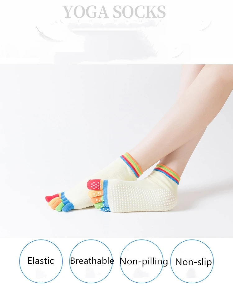 Женские противоскользящие носки для йоги, Нескользящие женские носки с пятью пальцами для фитнеса, спортзала, 5 пальцев, разноцветные эластичные