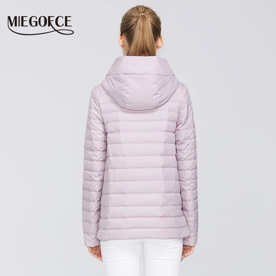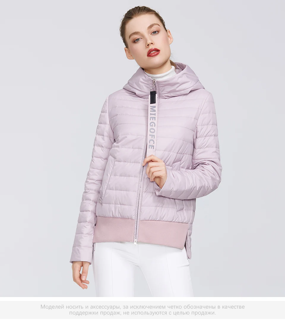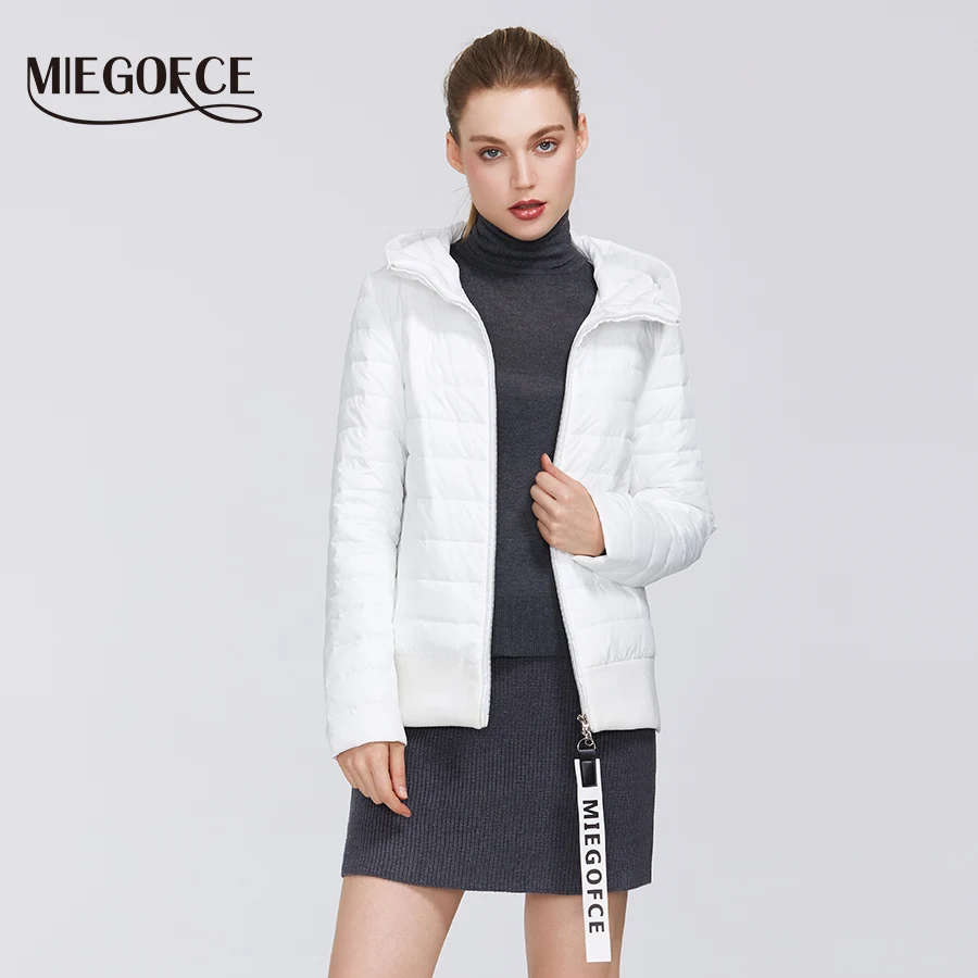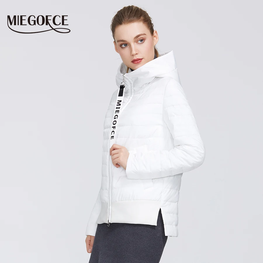MIEGOFCE 2020 Дизайнерская Весенняя Женская Коллекция Хлопчатобумажная Женская Весенняя Куртка Короткой Длины Стойкий Воротник С Капюшоном Куртка на Молнии с Лого MIEGOFCE Спортивно-Класическое пальто
