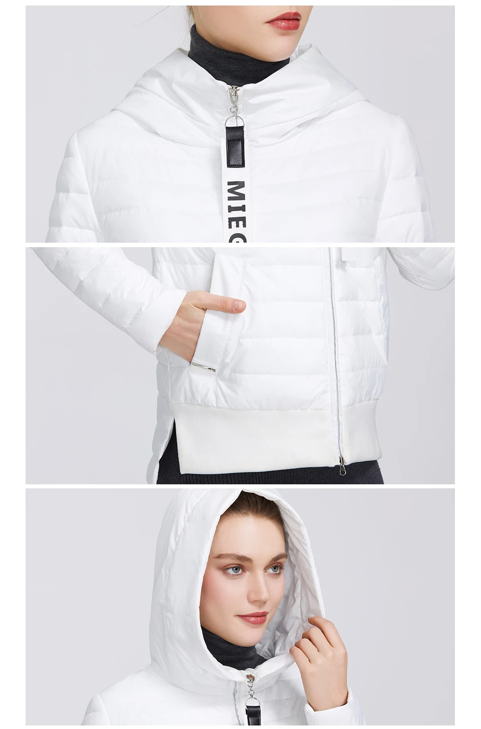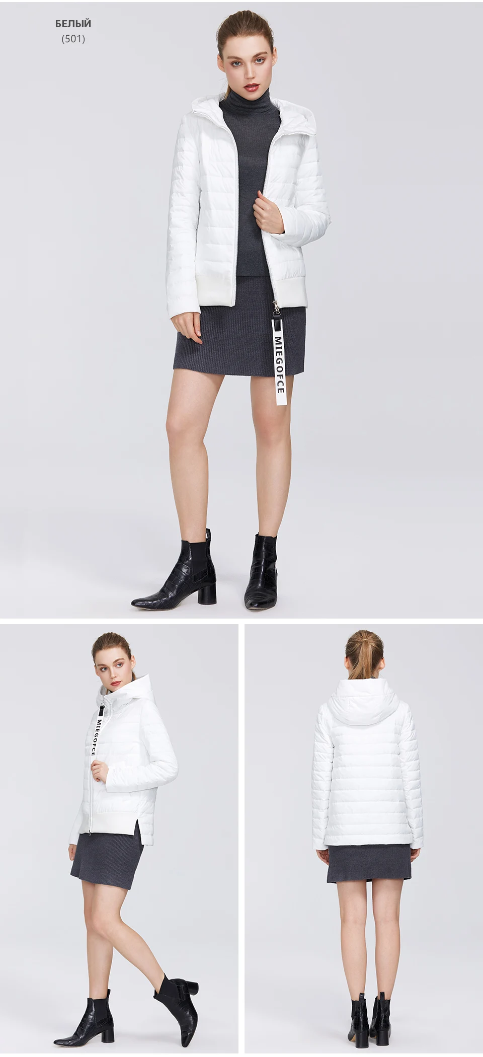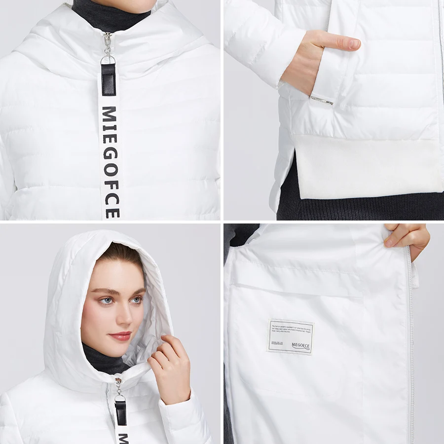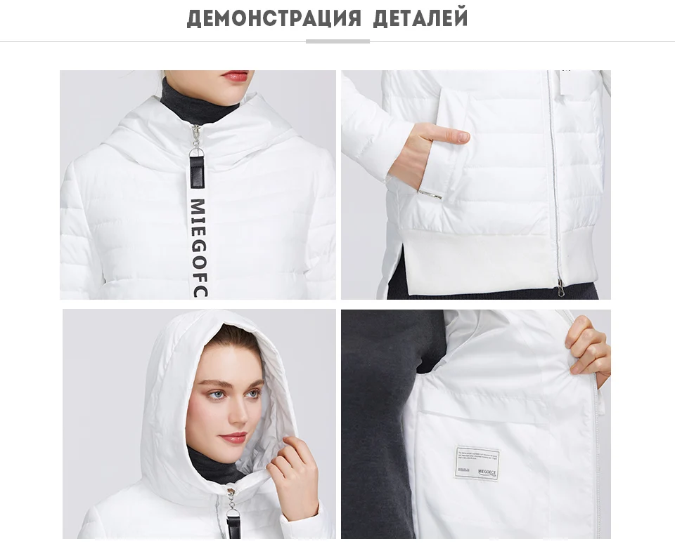 MIEGOFCE 2020 Дизайнерская Весенняя Женская Коллекция Хлопчатобумажная Женская Весенняя Куртка Короткой Длины Стойкий Воротник С Капюшоном Куртка на Молнии с Лого MIEGOFCE Спортивно-Класическое пальто