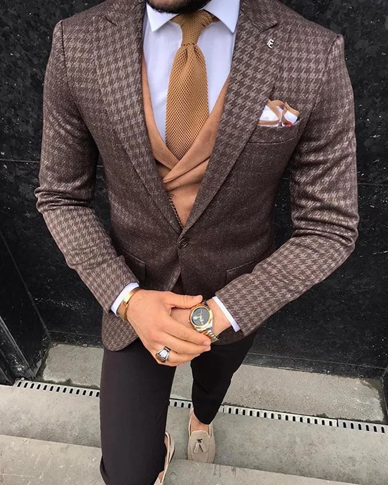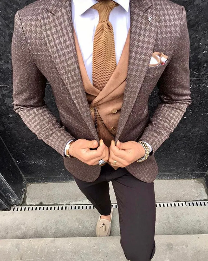 Мужской винтажный костюм-двойка, коричневый пиджак с жилетом в елоч...
