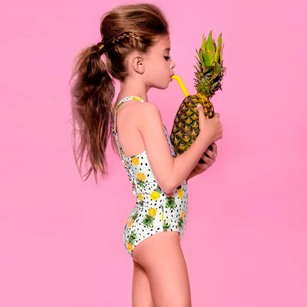 Летняя мода, детский слитный купальник для маленьких девочек без рукавов, Танкини с оборками в виде ананаса, купальный костюм, пляжная одежда # p4
