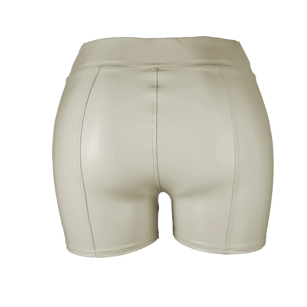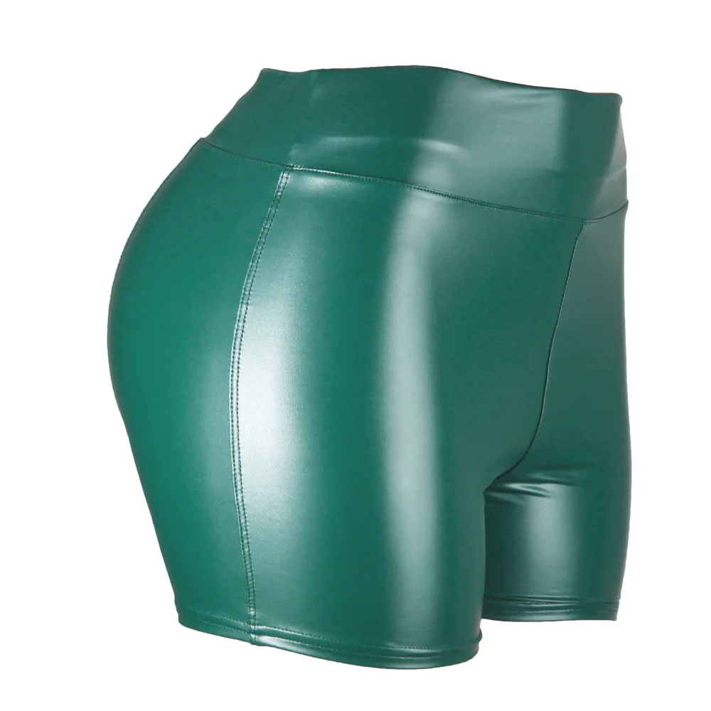 Шорты женские из искусственной кожи с завышенной талией, пикантные облегающие однотонные черные летние короткие брюки, повседневные Модные эластичные шорты с пуш-ап из ПУ кожи, большие размеры