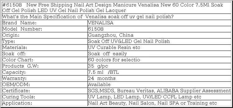 Гель-лак Venalisa длинная одежда Топ Дизайн ногтей маникюр 60 цветов 7,5 мл отмачиваемый эмалированный Гель-лак УФ-гель для ногтей лак