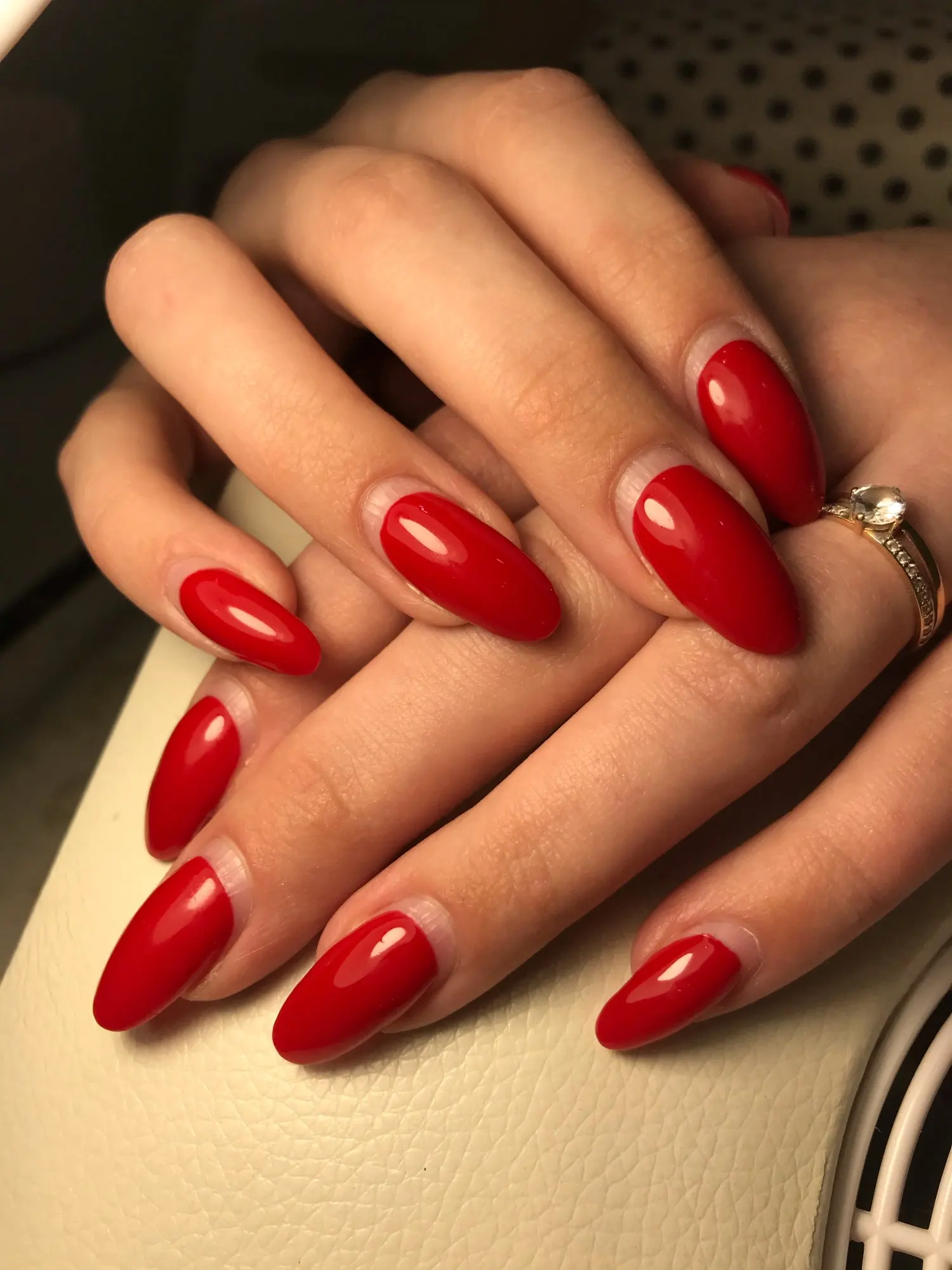Гель-лак чудової якості, насичений класичний червоний, гарно лягає в один шар, самовирівнюється) Добре запакований, не розлився, не розбився. Адресна доставка кур'єром) Єдиний мінус - дуже довго чекала замовлення (майже два місяці).