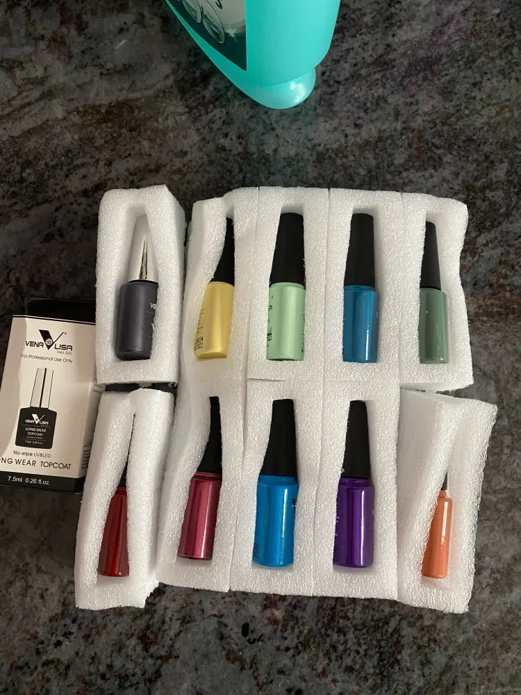 очень долгая доставка,по России не отслеживались,продавец сам продлил защиту покупателя,но всё-таки дошли, качество лаков хорошее,самовыравниваются,в лампе просыхают хорошо,сушила одну минуту.