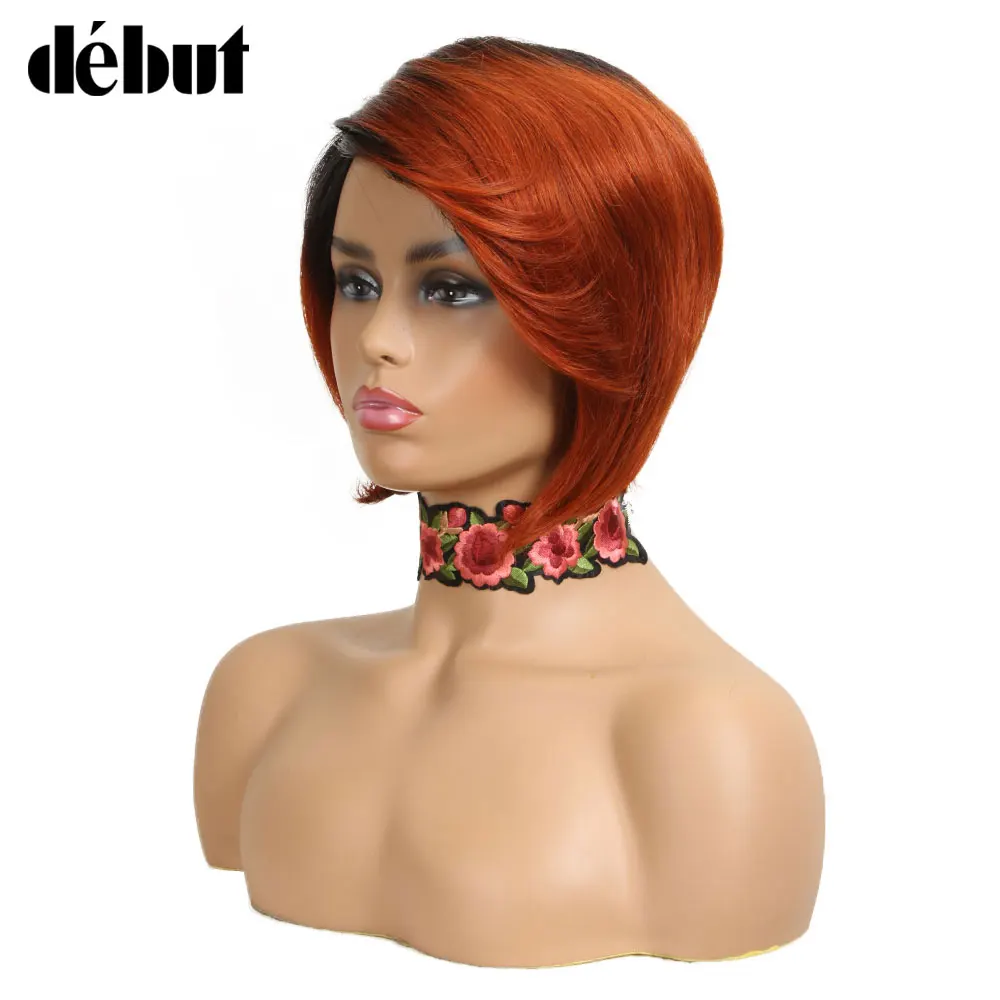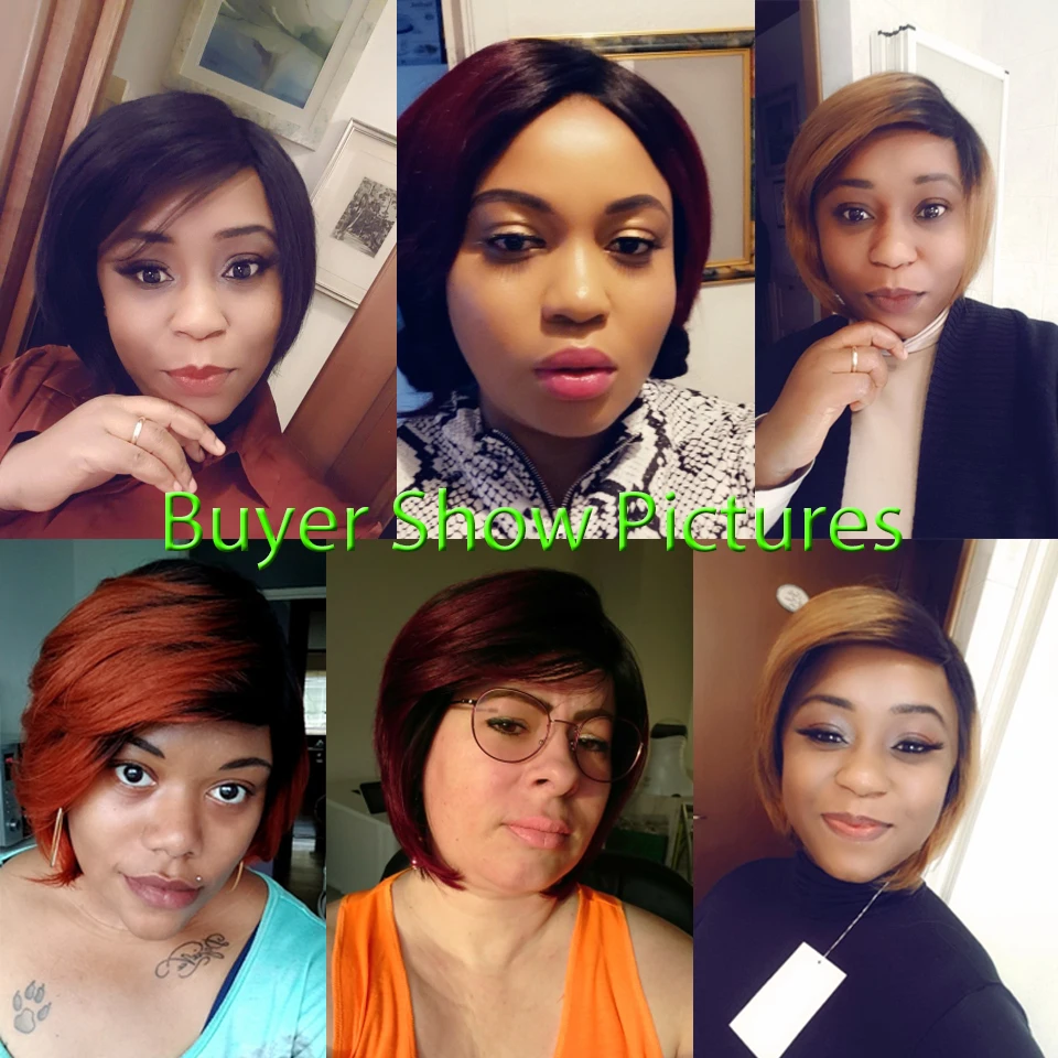 Парики короткие боб с эффектом дебюта, Недорогие парики из натуральных волос для чернокожих женщин, 99J красный стриженный Пикси, прямые бразильские волосы Реми