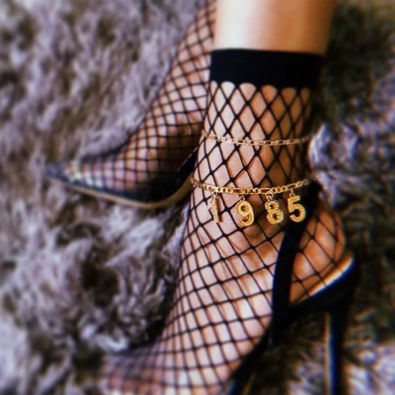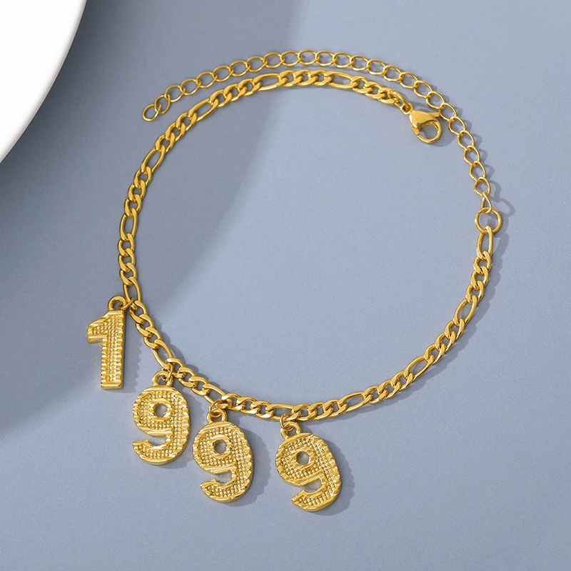 Браслеты на ногу цифровые женские, анклеты из нержавеющей стали под заказ, ювелирные изделия в стиле бохо, под золото, с ножками на год рождения
