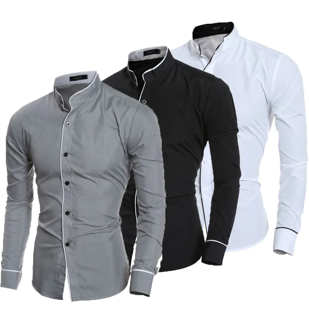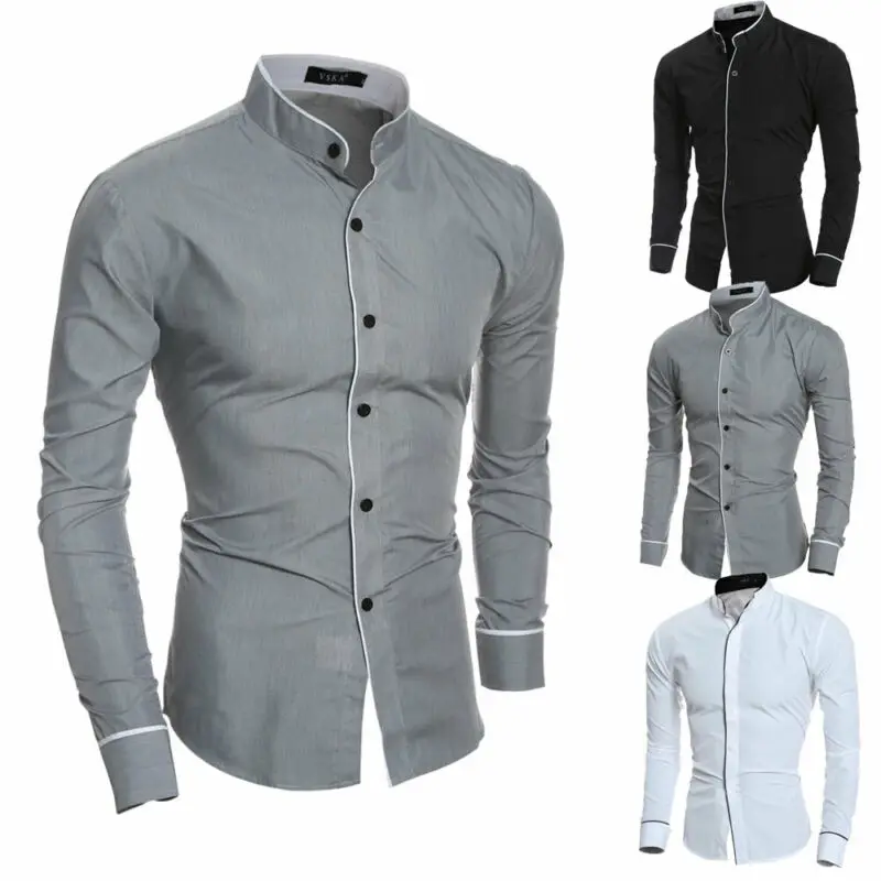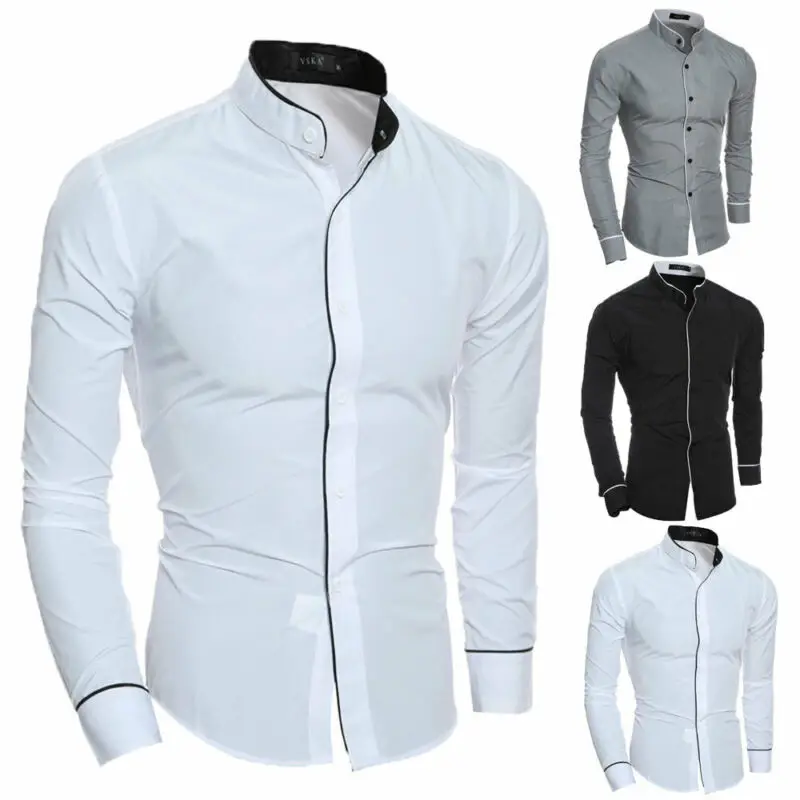 Рубашка Hirigin мужская деловая, роскошная приталенная блузка с длинным рукавом, повседневная строгая блузка, однотонная Облегающая рубашка в деловом стиле