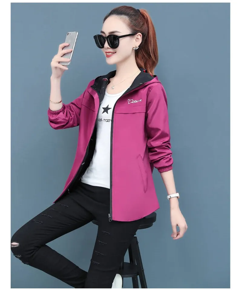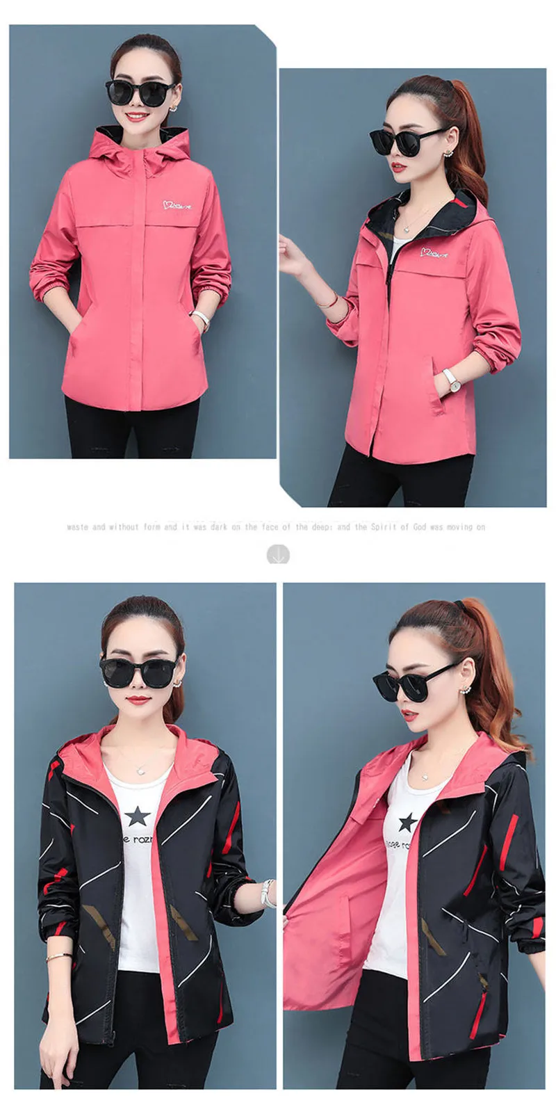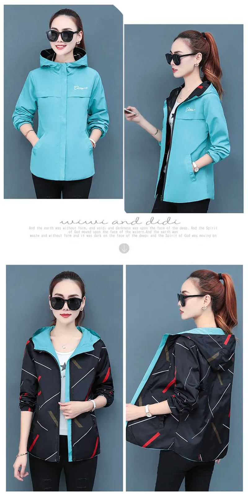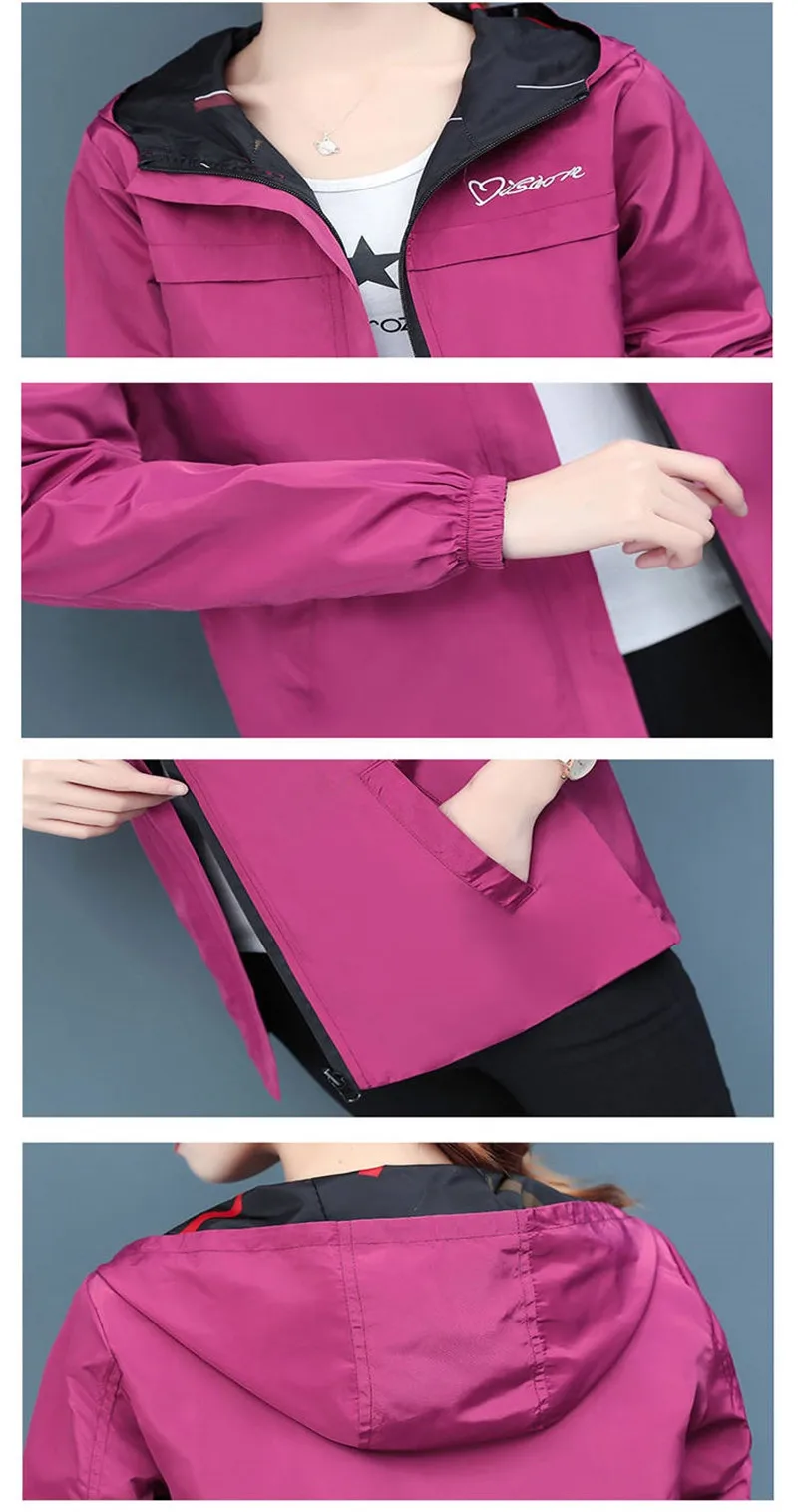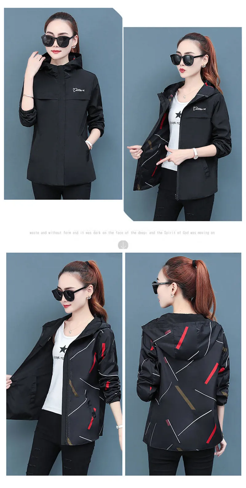 Куртка женская демисезонная с капюшоном, двухсторонняя, свободная, с мультяшным принтом, P304, 2020