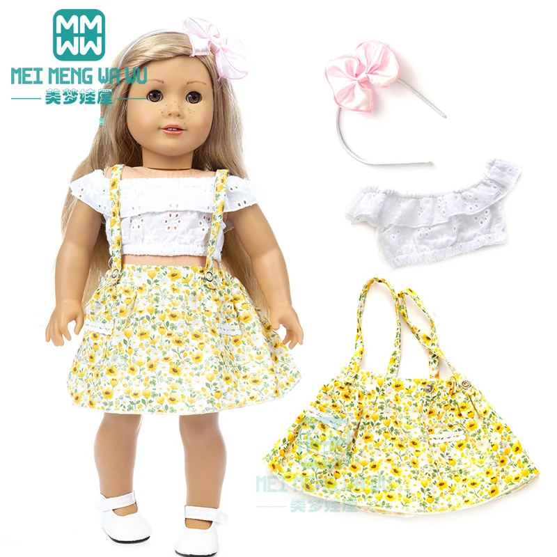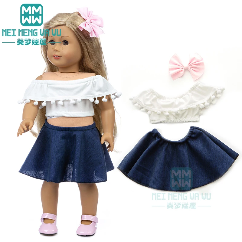 Одежда для куклы белая рубашка + юбка на бретельках + Бант подходит для американских кукол 45 см и аксессуары для новорожденных