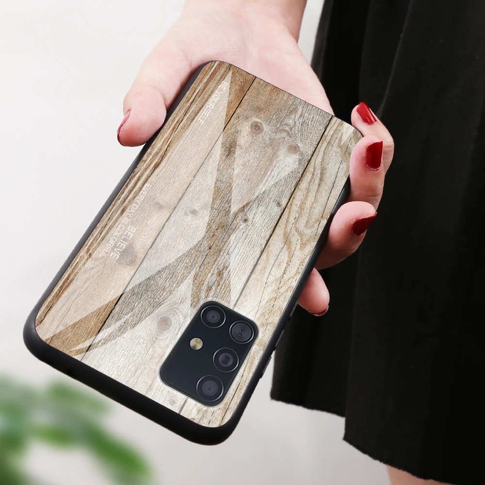 Чехол из закаленного стекла под дерево для Galaxy M62, F62, A 32, 4...