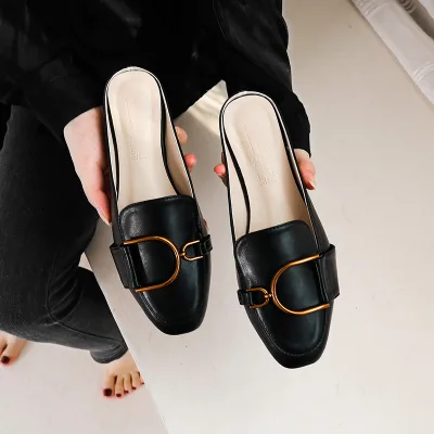 Мюли женские из лакированной кожи, шлепанцы без застежки, квадратный носок, плоская подошва, сланцы, размера плюс 42, JJ12