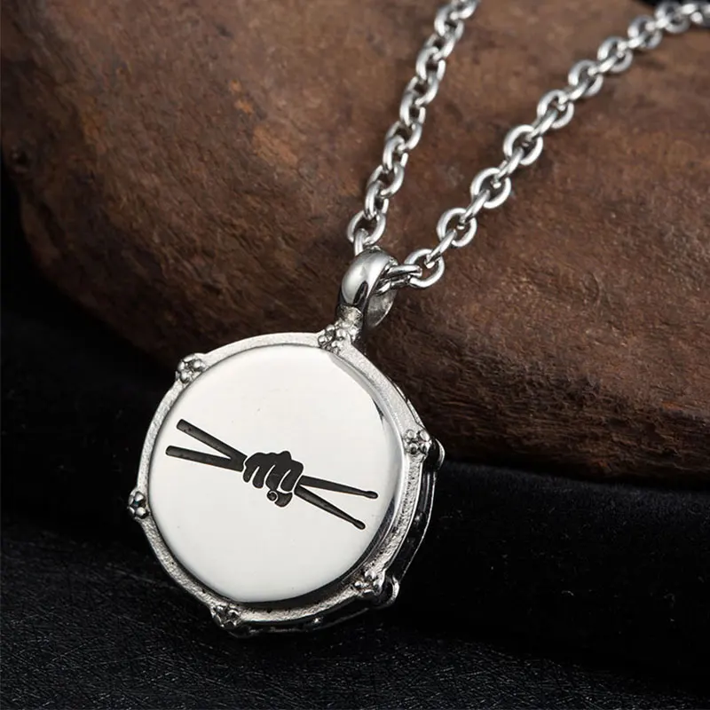 Ожерелье унисекс из нержавеющей стали мужское, цепочка с подвесками в стиле джаз, барабан и барабан в стиле хип-хоп, наклейка ожерелье цвета серебро, ювелирные изделия