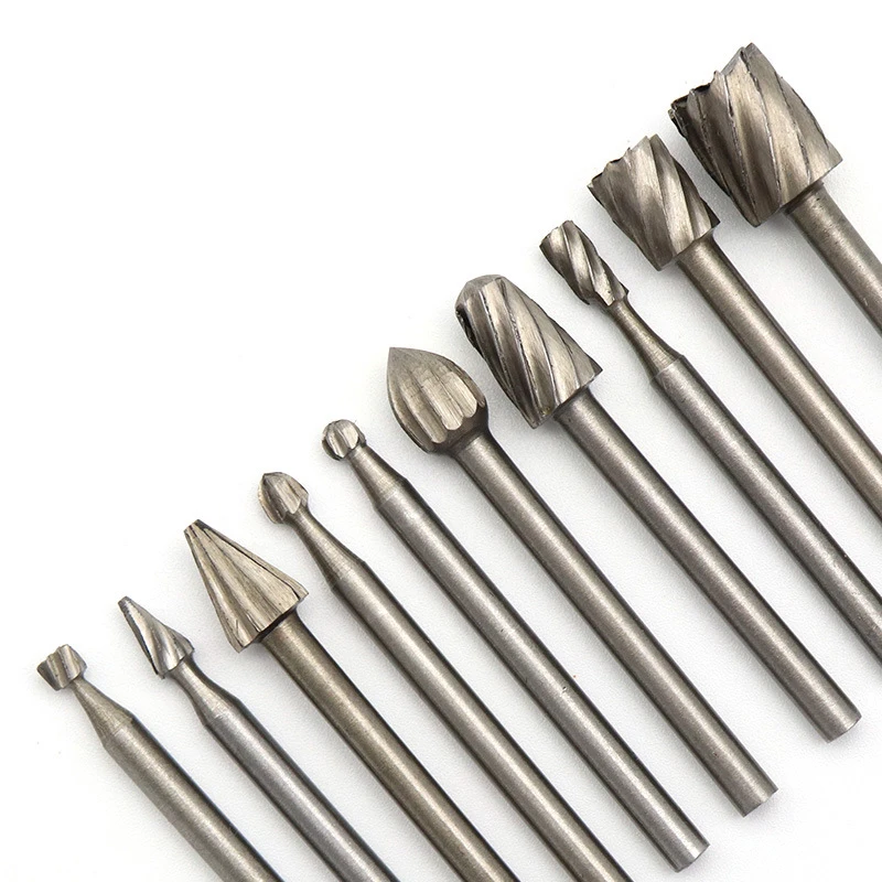 10 шт., роторный напильник из быстрорежущей стали, 3 мм, сверла, роторные заусенцы, металлический алмазный шлифовальный станок по дереву, деревообрабатывающий нож для резьбы по дереву