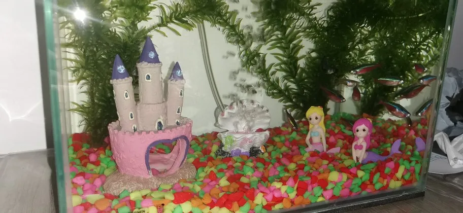 Мультяшный розовый замки для аквариума из смолы для аквариума, ландшафтное украшение, башня, украшения для водных рыбок, домашних животных