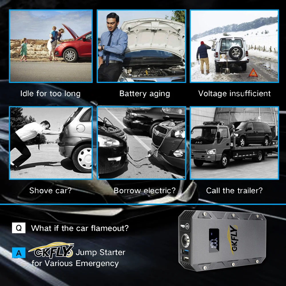 Пусковое устройство высокой мощности, 2000 А, 12 В, автомобильное пусковое устройство, зарядное устройство для бензиновых и дизельных автомобилей, пусковые кабели для автомобильного аккумулятора, бустер