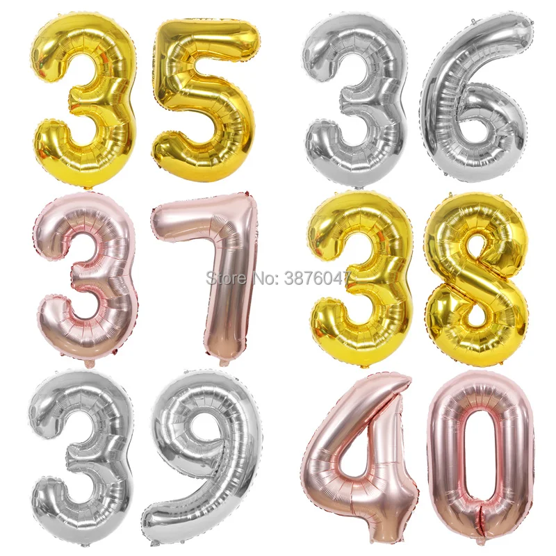 Воздушные шары 40 дюймов, золотые, серебряные, юбилей, вечеринка, украшение, 35, 36, 37, 38, 39, 40