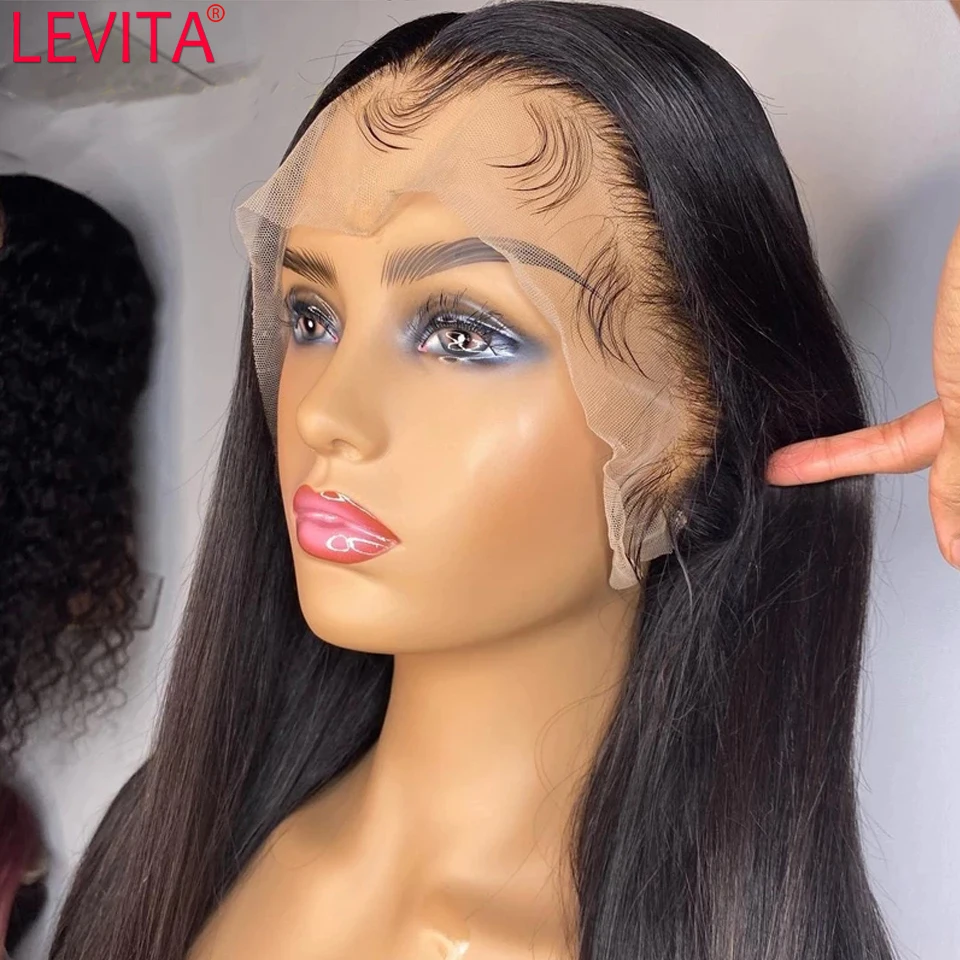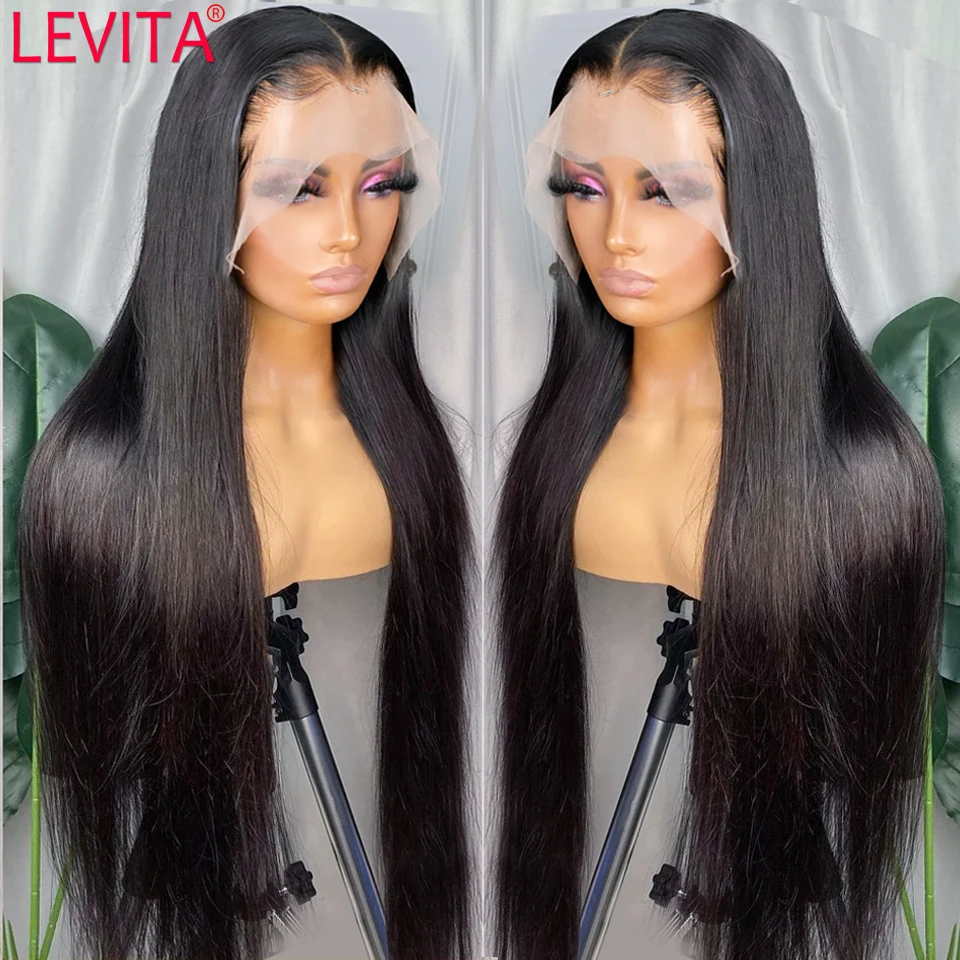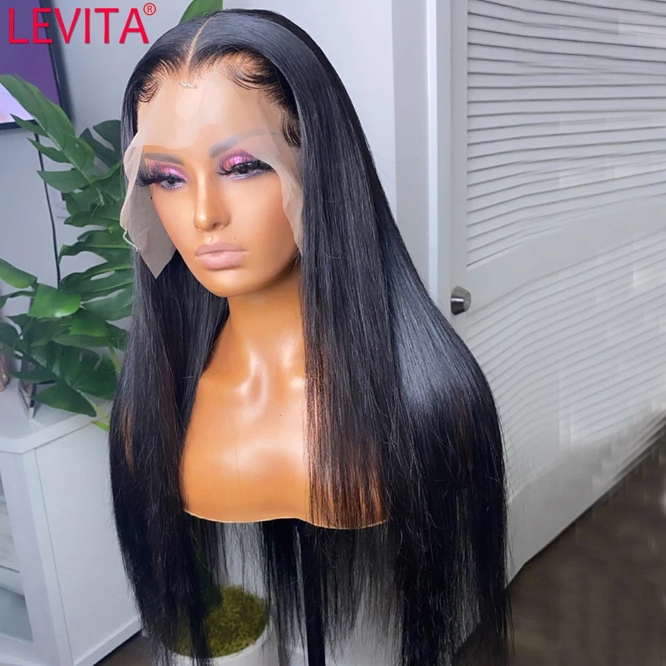 LEVITA 30 дюймов парик фронта шнурка бразильские кости прямые бесклеевые парики фронта шнурка al человеческие волосы для женщин парик закрытия натуральные волосы