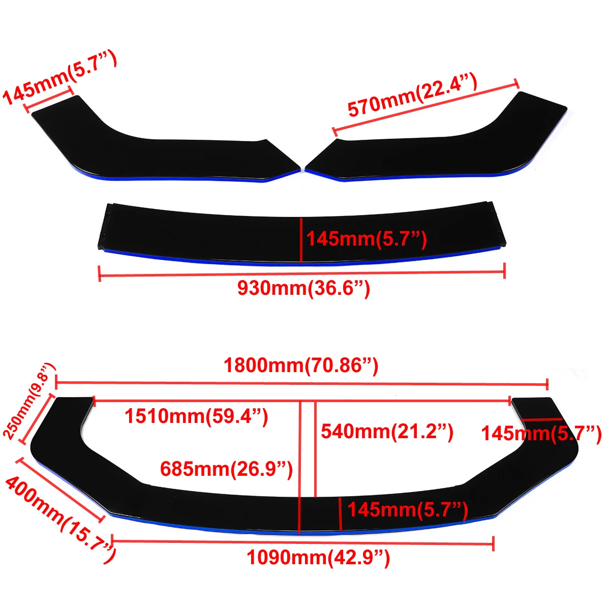 Посылка включает в себя:1 комплект переднего бампера для губ (3 шт.)Черный с красным/синим/белым/зеленым/желтым цветом линии
