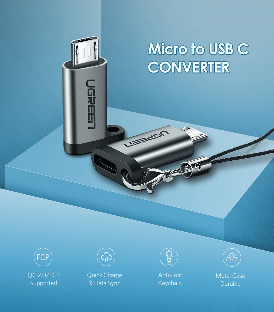 Переходник Micro USBUSB C Ugreen мобильный телефон, для Xiaomi Redmi, Oppo, Vivo