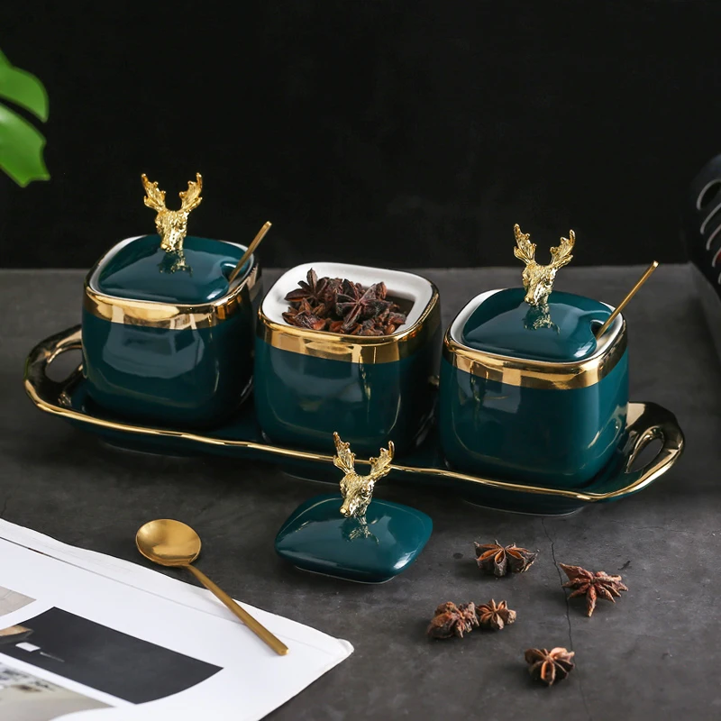 Скандинавская Роскошная керамическая банка для хранения приправ, бытовая коробка для приправ, стандартная кухонная банка для сахара