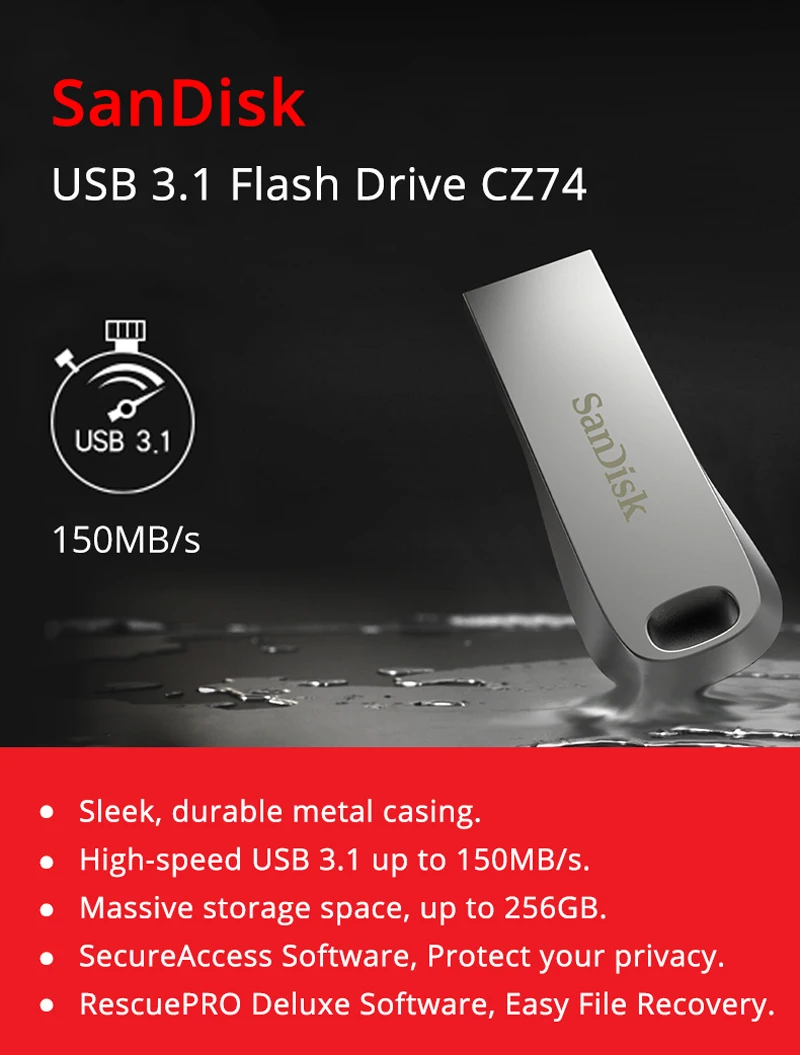 Флеш-накопитель SanDisk USB3.1, новый, CZ74, 256 ГБ, 128 ГБ, 64 ГБ,...
