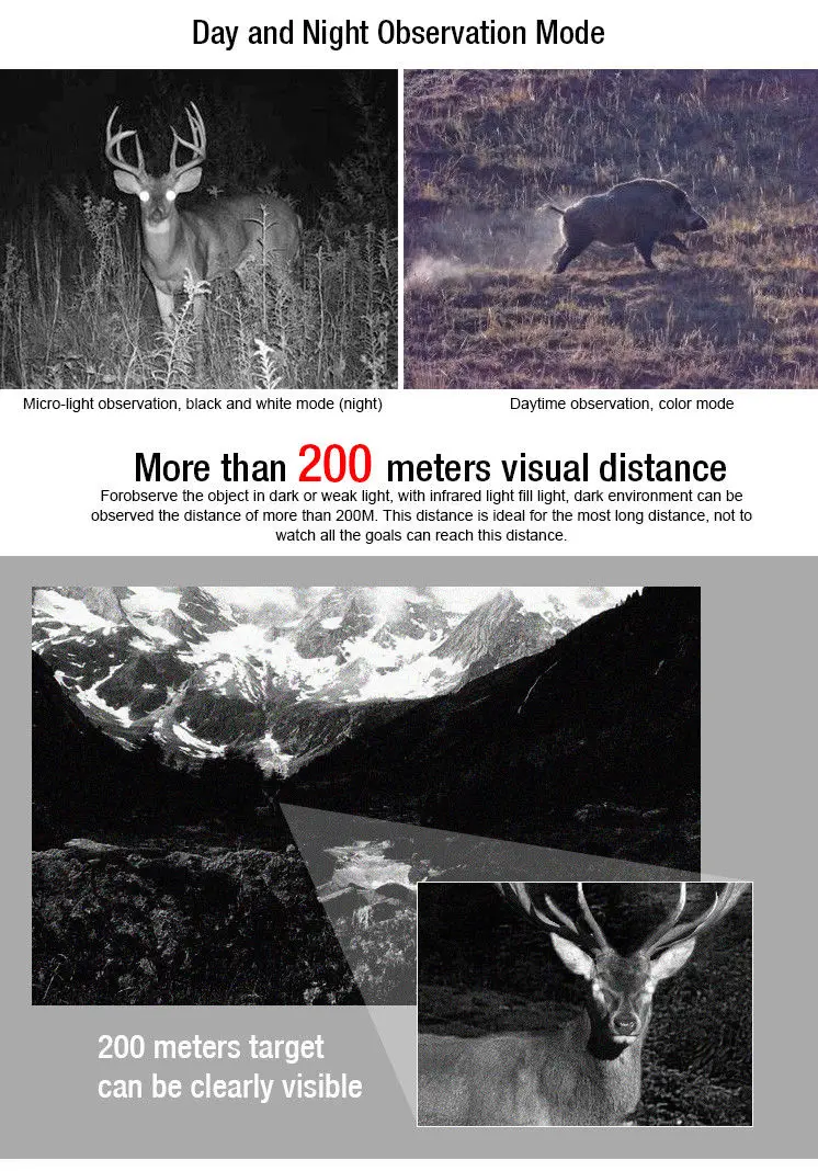 Мини цифровой военный тактический оптический монокулярный телескоп ночного видения устройство для охоты 200 м больше визуального расстоянияОсобенности:Ночное видение-это точный электронный инструмент, используемый для наблюдения за мишенью в темноте и сумерках.Для того, чтобы встретить очень низкий светильник интенсивности, ночное видение с инфракрасным источником облучения светильник, включите выключатель питания, вы можете настроить его яркость путем переключения.Яркий и тусклый светильник показывает цветовые изображения и черно-белое изображение в темноте.Его собственный инфракрасный светильник с источником излучения, в зависимости от использования условий окружающей среды, может быть открыт или закрыт, и может, в зависимости от окружающей среды светильник с ручным регулированием яркости в наилучшем состоянии.Характеристики:Увеличение: 2XЦель: 28 ммПоле зрения: 6,4 °Диаметр выходного зрачка: 14 ммРасстояние горшка для глаз: 15 ммПараллакс: ± 5 °Минимальная дальность: 0,8 ммДальность ночного просмотра: >200 мДатчик: 1/4 "CMOSГоризонтальное Разрешение: 420 линийУстройство отображения: светодиодныйРазрешение: 330x224 пикселейОсветительное устройство: 1R светодиодныйЦентральная длина волны: 850 ммРабочее напряжение: DV 3VВстроенная Мощность: батарея AAБатарея выносливость: 1,5/2,5 h (1R Вкл/1R в выключенном состоянии)Переключатель:1. Выключатель питания2. Регулировка яркости инфракрасного освещения3. Принудительный переключатель инфракрасного освещения.![]()