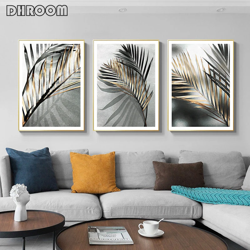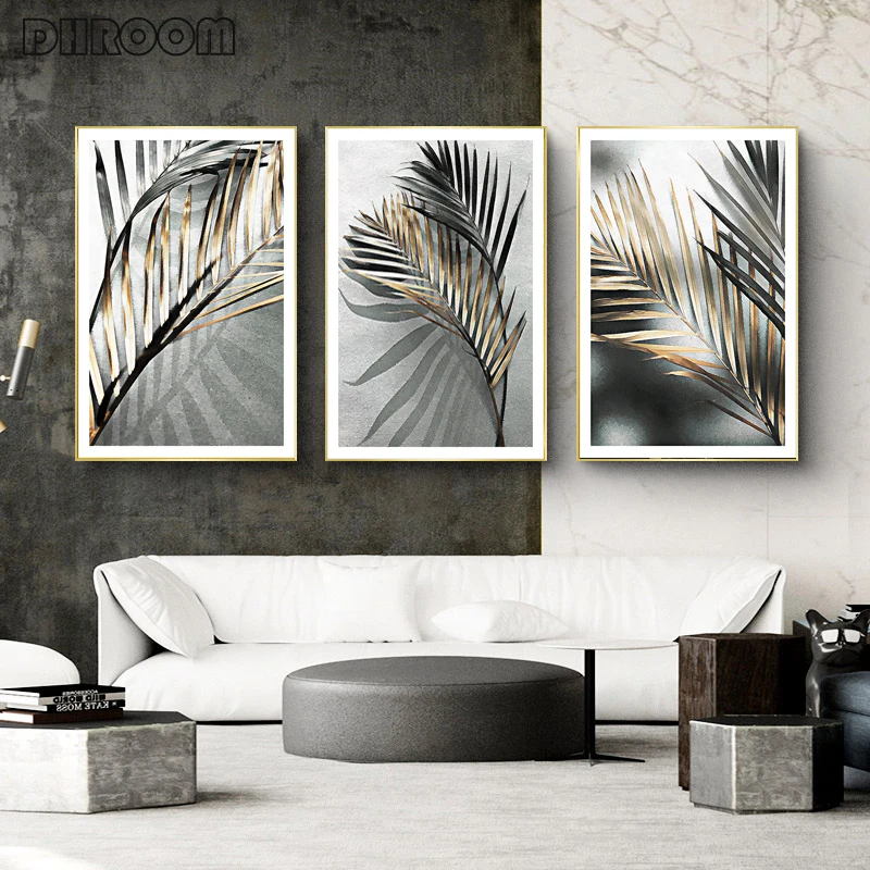 Картина на холсте с изображением золотых пальмовых растений, плакат...