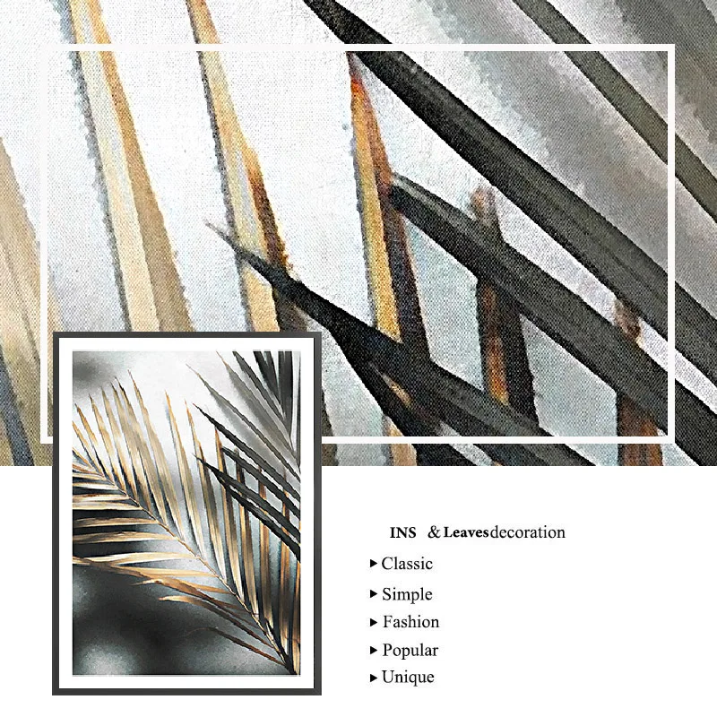 Картина на холсте с изображением золотых пальмовых листьев, ботанич...