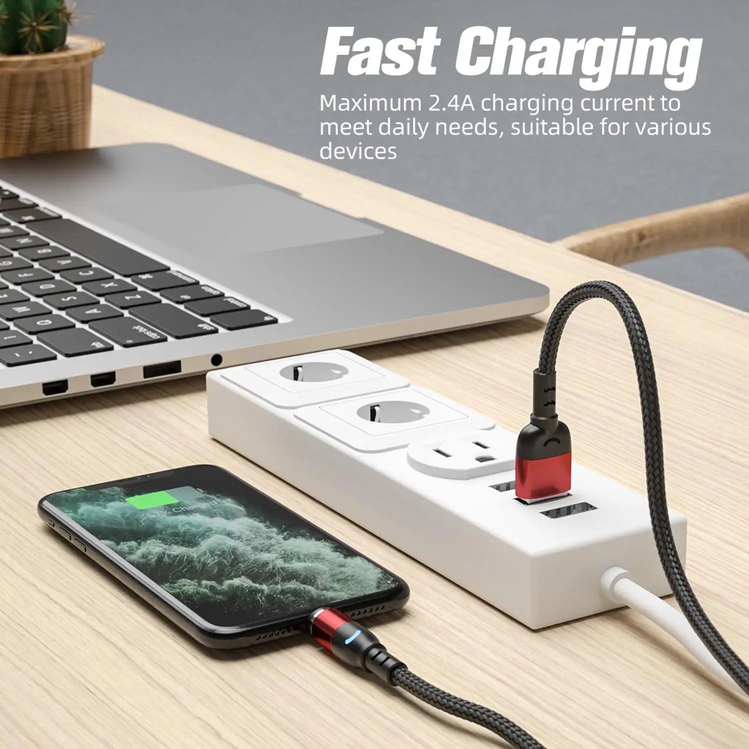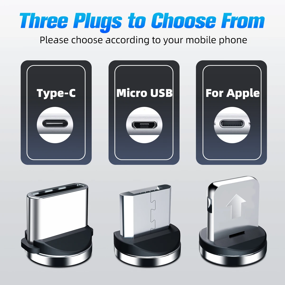 Магнитный кабель ANMONE USB Type-CMicroLightning для телефонов iPhoneAndroid, 2.4A, 12 м
