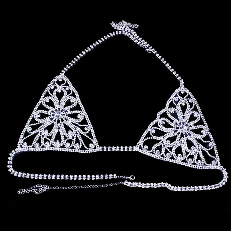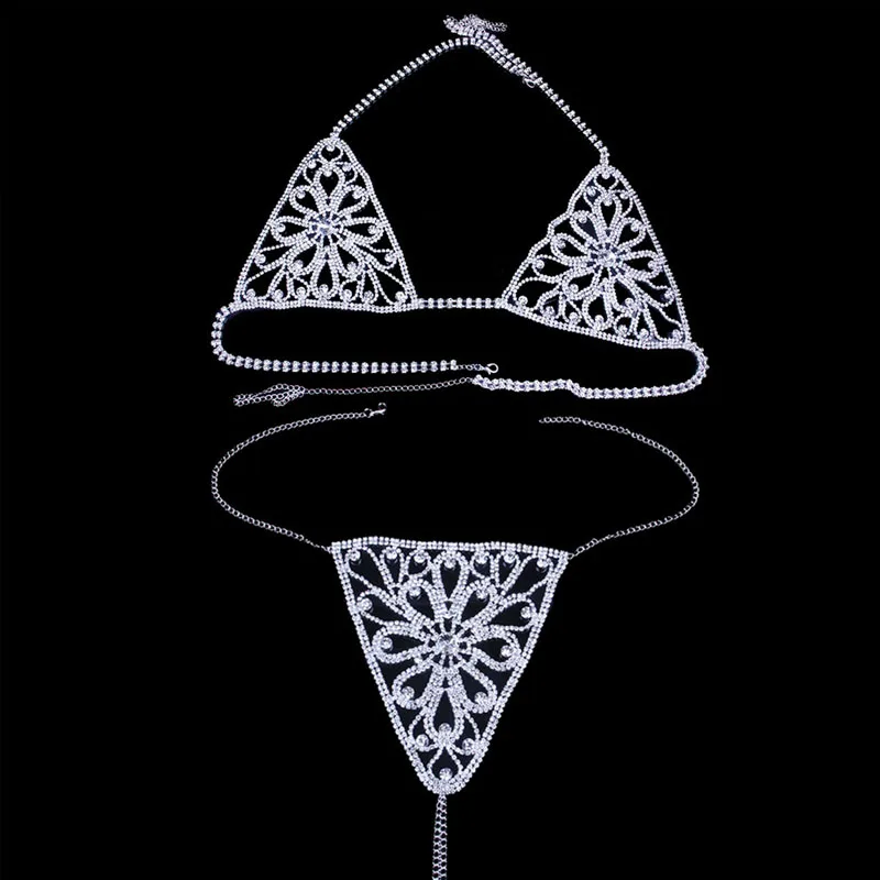 Комплект бикини, блестящие стразы, цепочка для тела, женская бижуте...
