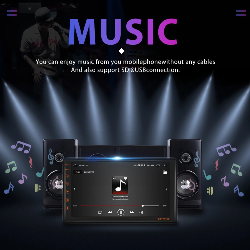 13. Вы можете наслаждаться музыкой с вашего мобильного телефона без каких-либо кабелей, а также поддерживает USB connetion.