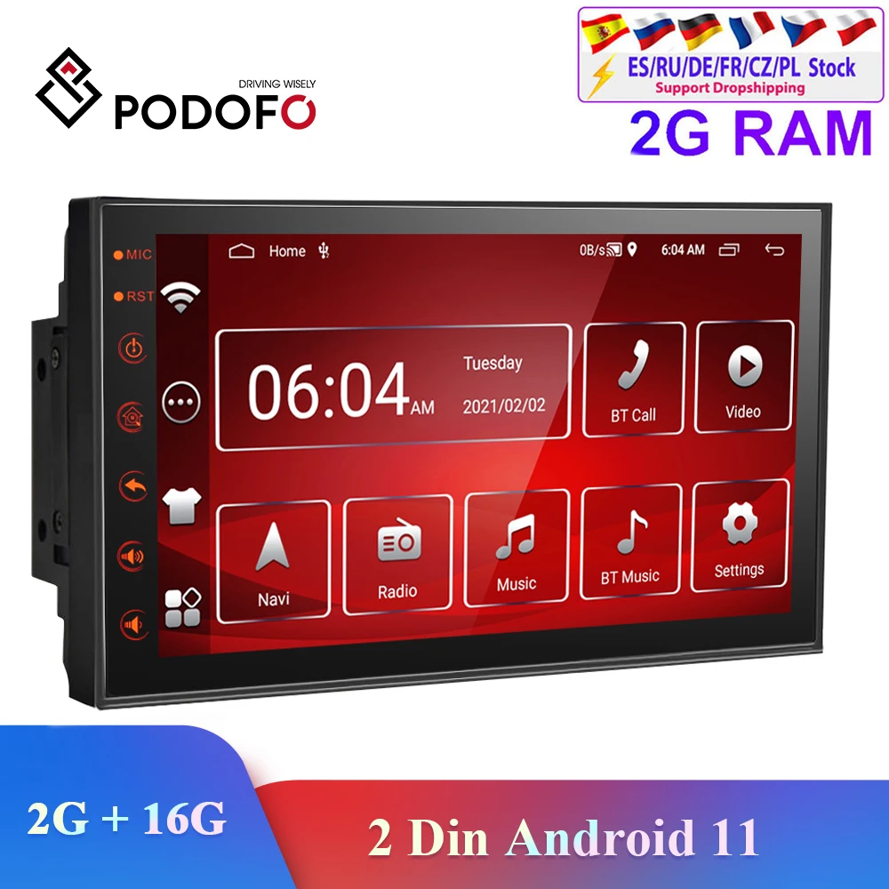 Podofo 2 din Android 11 автомобильный радио мультимедиа MP5 плеер GPS навигация Wifi 7 "Универсальный Авторадио BT FM USB аудио стерео видео плеер для Volkswagen Nissan Toyota Hyundai Polo