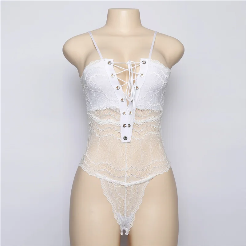 Прозрачное боди на шнуровке, женский сексуальный комбинезон с глубо...