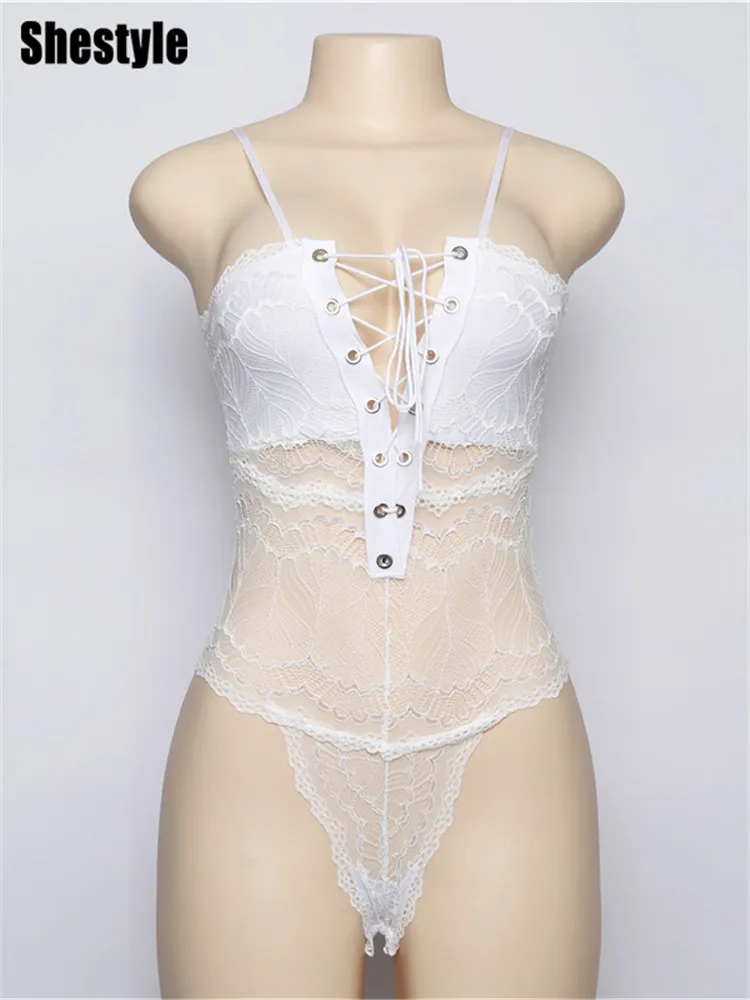 Женское прозрачное боди Shestyle, с завязками спереди, с V-образным вырезом, лето сексуальные женские комбинезоны