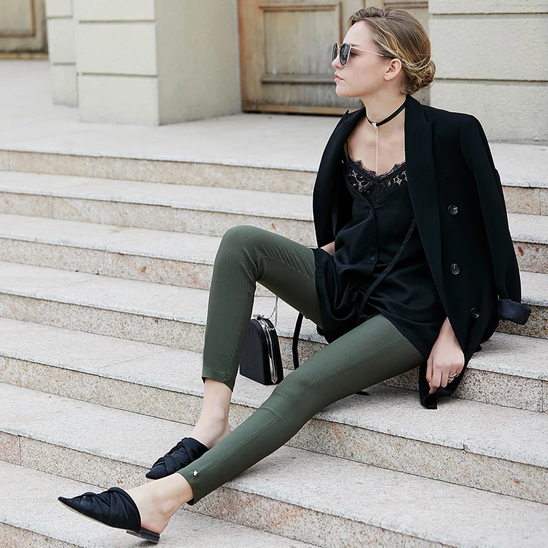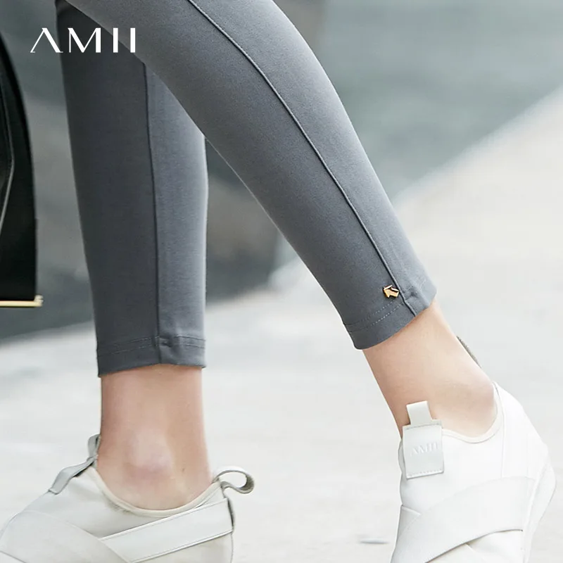 Минималистичные весенне-летние однотонные узкие эластичные брюки Amii, женские мягкие брюки-карандаш с высокой талией, 11764904
