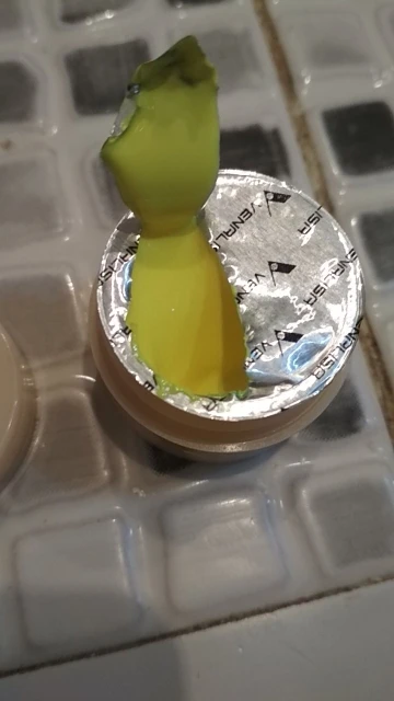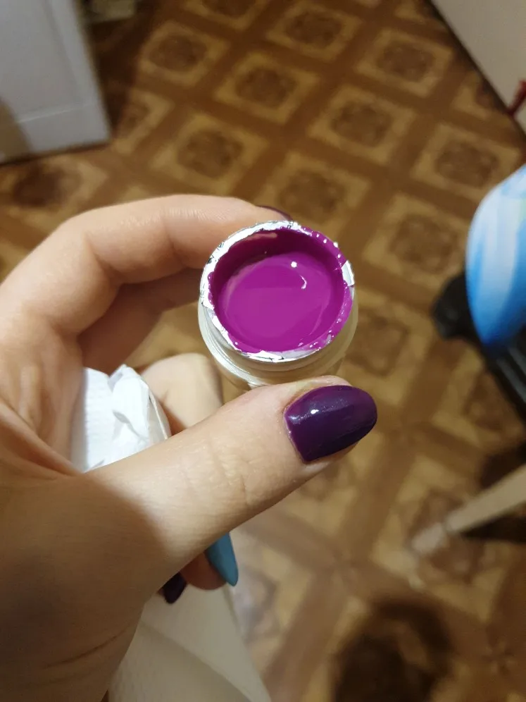 Красивый цвет, немного не такой как на фото продавца, хорошо пигментирован, в работе ещё не пробовала, но на вид цвет довольно плотный. Посылку принёс курьер, ждала краски месяц с момента заказа. Есть странный запах, он не сильный, но смущает. Упакованы краски в простой пакет, каждая баночка запаяна поэтому ничего не протекло. Кстати запаяна очень хорошо и нет штучки за которую можно потянуть и снять плёнку. Пока открывала вся перепачкалась