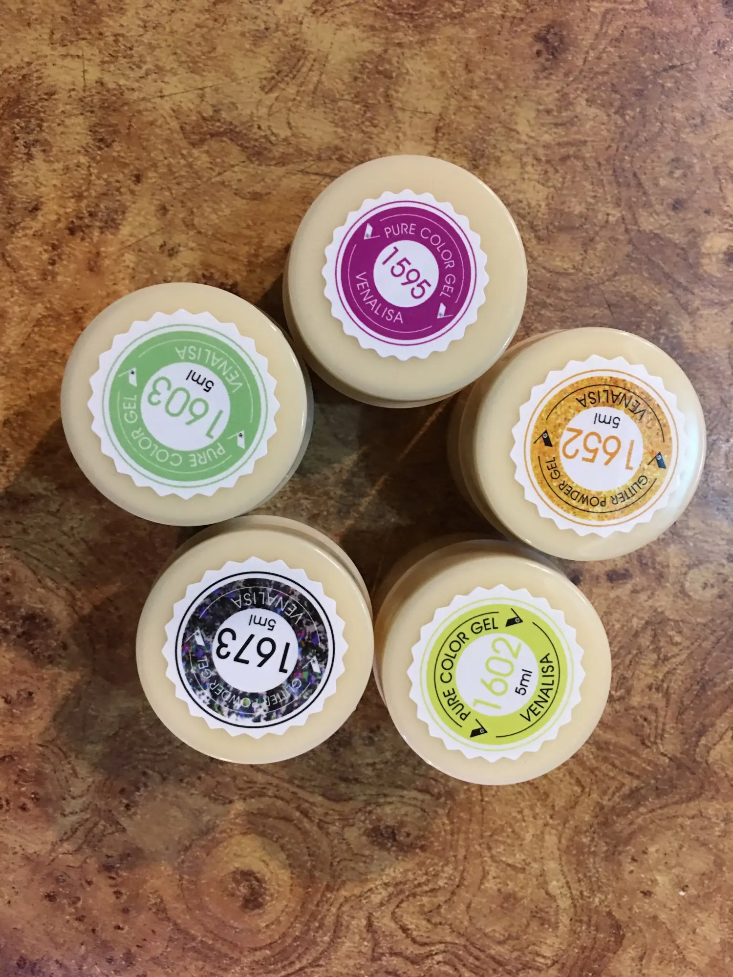 все супер.доставка быстрая.всего 30 дней до Бурятии Улан Удэ.Лаки вполне хорошие.густые в меру.цвета насыщенные.выравниваются хорошо.Баночки маленькие,но полные!Отправка быстрая.Трек отслеживался.Спасибо продавцу.Ещеб были кисточки к ним,былоб здоровооо.но и так не плохо за 30 р.баночка.