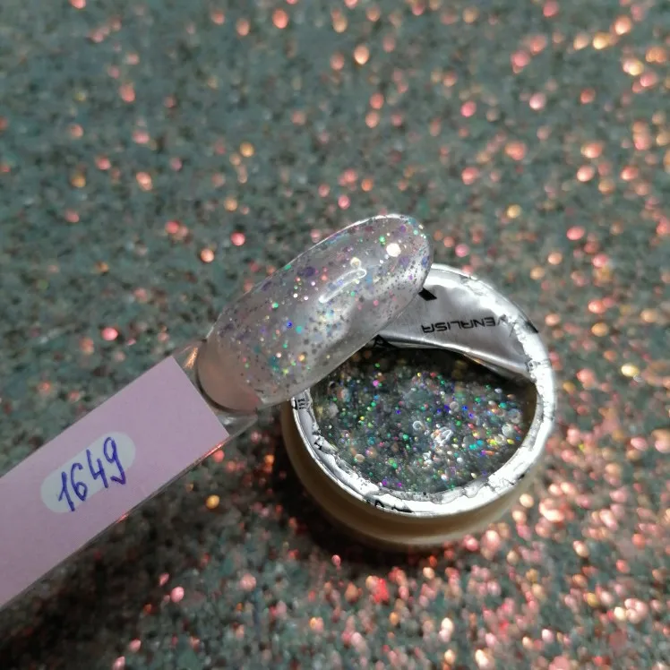 Всё как в описании, ещё не пробовала, на вид хороший гель, блёсток много, цвет как на картинке