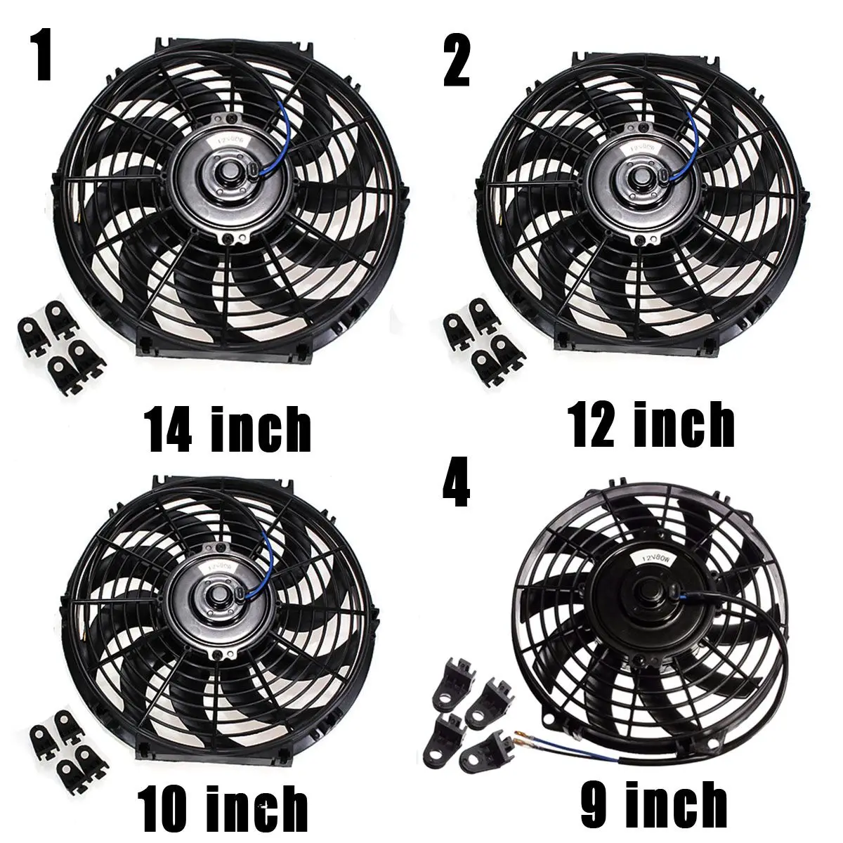 9 ''/10''/12 ''/14'' 12V 80W электрический вентилятор для охлаждения радиатора с монтажным комплектом9 ''Описание вентилятора:Материал: АБС-пластикЦвет: черныйКоличество: 1 шт.Размер: 9 дюймовТолщина (высота мотора): 2,5 дюймаРасход воздуха: >1130 куб. М/чВентилятор CFM: 335CFMСкорость: 2100 об/минВольт: 12 В постоянного токаМощность: 80 ВтДлина провода: около 40 см10 ''Описание вентилятора:Материал: АБС-пластикЦвет: черныйКоличество: 1 шт.Размер: 10"7/9/12 дюйма также доступны, пожалуйста, посетите наш магазин, свяжитесь с нами.Вольт: 12 В постоянного токаМощность: 80 ВтДлина провода: около 40 см/15,75"12 ''Описание вентилятора:Материал: АБС-пластикЦвет: черныйКоличество: 1 шт.Размер: 12"7/10/14 дюйма также доступны, пожалуйста, посетите наш магазин или свяжитесь с нами.Вольт: 12 В постоянного токаМощность: 80 ВтCFM: 558Длина провода: около 40 см/15,75"14 ''Описание вентилятора:Материал: АБС-пластикЦвет: черныйВольт: 12 В постоянного токаМощность: 80 ВтВентилятор CFM: 676 CFMВентилятор об/мин: 52100 об/минКоличество лезвий: 8 лезвийРазмер: 14 дюймов.Толщина: 2,5 дюймов.Длина провода: около 40 см/15,75"Приспособление:УниверсальныйОсобенности:1. АБС-пластик, легкий2. Уникальный дизайн лопасти вентилятора позволяет тянуть или нажимать воздух с той же скоростью.3. Двигатель легко Реверсивный для любого применения. Большинство других вентиляторов предназначены для одностороннего воздушного потока.4. Наши вентиляторы имеют десять точек для монтажных ножек, что дает вам гибкие варианты установки.5. На самом деле тонкий вентиляторы. Они измеряют только 2,5 "на глубокой точке, что делает их идеальным решением для тесных областях.Посылка включает в себя:1 x Электрический вентилятор для охлаждения радиатора (9 ''/10''/12 ''/14'')1 х Монтажный комплект