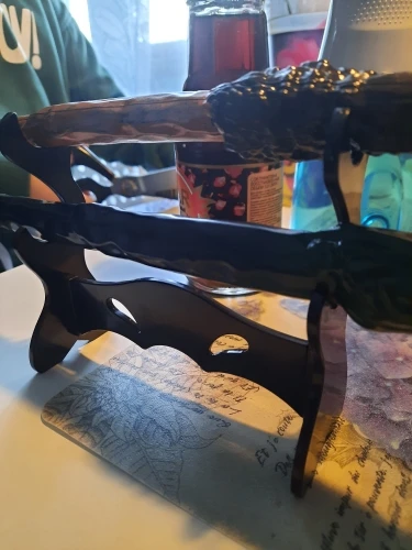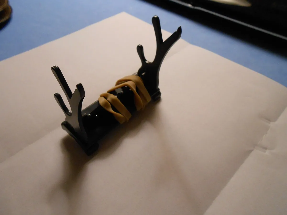 Он поставляется в разобранном виде, и теперь-части уже приклеены-я должен остаться, пока клей не высохнет. Через пару часов этого будет достаточно. Я думаю, что он будет носить жирную ручку внизу-из-за большего веса-и тонкую ручку сверху. Это меньше, чем я думал, и у него также нет места для размещения. С двумя я думаю, что этого будет достаточно. Это также очень дешево. Ничего страшного.